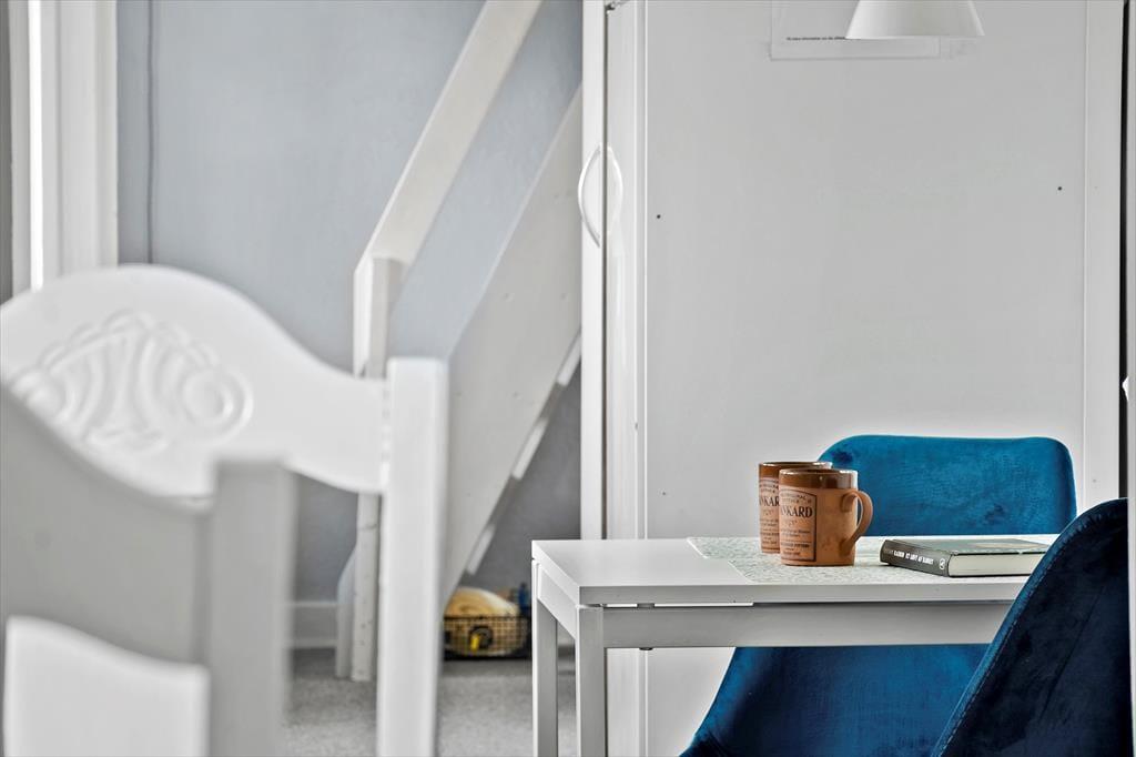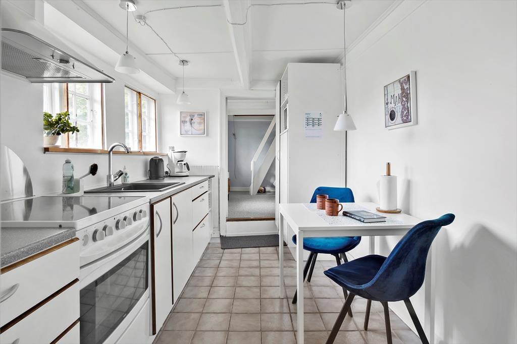 Dette hyggelige hus kan dateres helt tilbage til 1827. Huset har gennemgået en modernisering i 1994 og er derefter løbende vedligeholdt. Feriehuset indeholder en lille entré, et badeværelse med bruser og vaskemaskine samt et køkken med en lille spiseplads til 2 personer. Herudover er der en hyggelig stue med spiseplads og sovesofa, et værelse med dobbeltseng, hvorfra der er trappe op til 1. salen med endnu en dobbeltseng samt TV og Playstation..