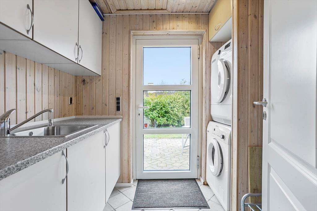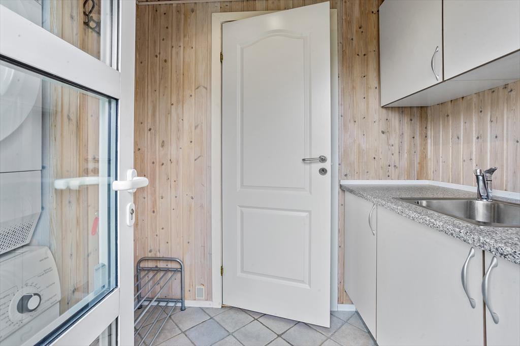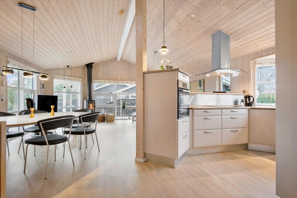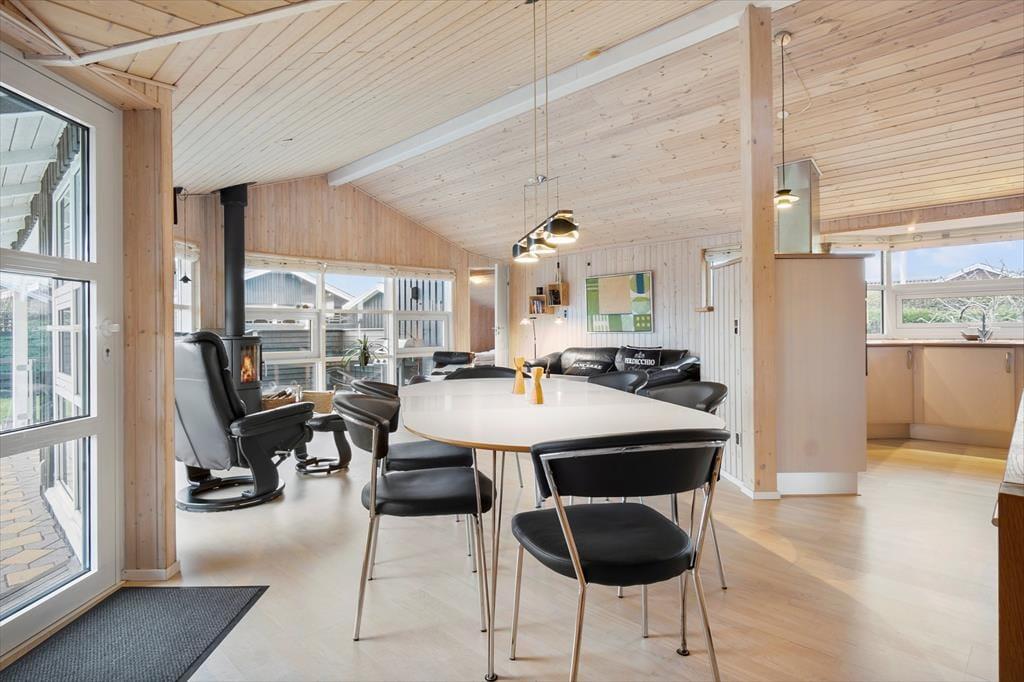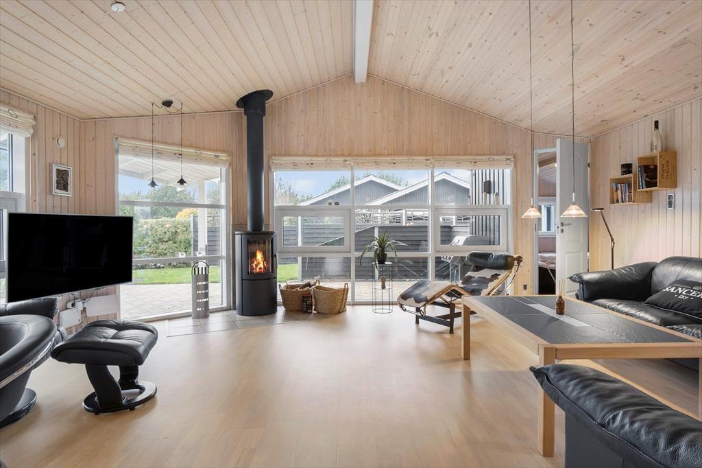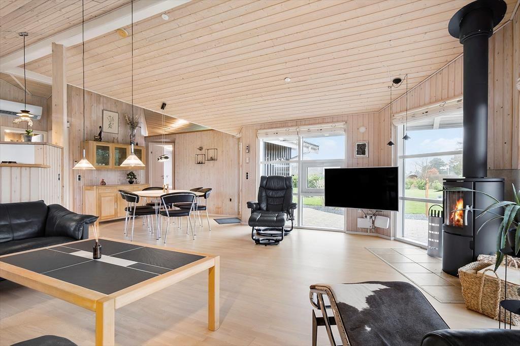Hyggeligt feriehus med plads til 7 personer. Huset indeholder en entré med vaskemaskine og tørretumbler, et veludstyret køkken med bl.a. opvaskemaskine og energibesparende varmepumpe samt i åben forbindelse med spiseplads og stue med brændeovn og udgang til terrasse. Derudover er der 3 soveværelser med hver en dobbeltseng, et værelse med 1 enkeltseng samt et stort badeværelse med bruseniche.