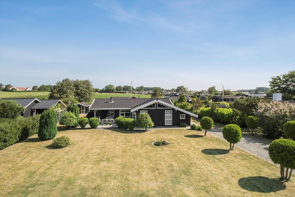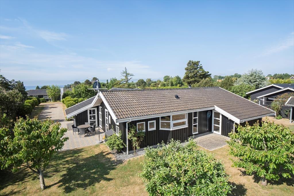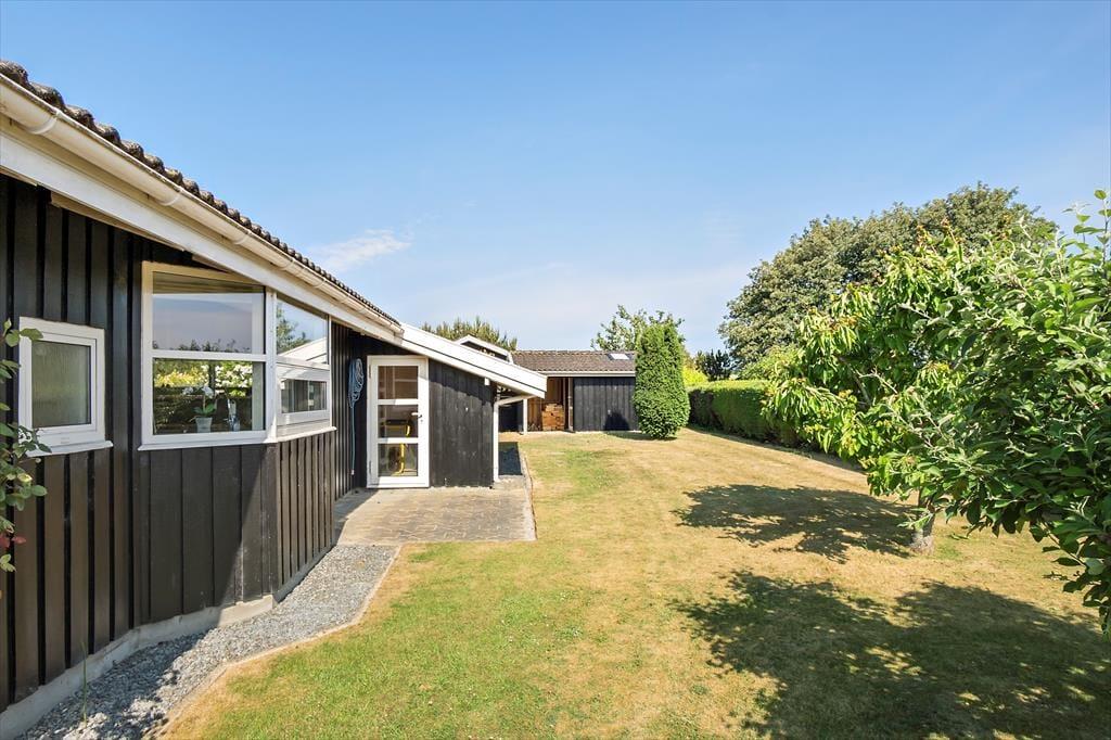 Til huset er et stort delvist overdækket terrasse område, med markise hvor man kan søge skygge samt havemøbler, liggestole og grill. Fra den flotte anlagte have er der kig til vandet. Der er kun ca. 2 km til nærmeste indkøbsmulighed og der er blot ca. 11 km ind til centrum af den hyggelige havneby Faaborg, hvor der tillige er gode indkøbs- muligheder og flere restauranter.