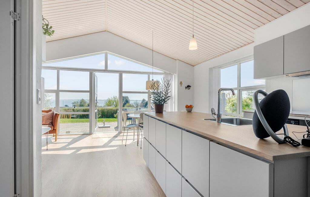 Lyset vælter ind af vinduerne, hvorfra der også er er havudsigt i dette sommerhus der ligger ved Horne Sommerland, ud til det skønne Sydfynske Øhav og 10 km fra Faaborg. Huset er dejligt solidt og bygget i røde mursten, på næsten 100 m², med plads til otte personer. Her er tre soveværelser og to badeværelser, stue og køkken i ét – her kan I sidde indendørs eller udendørs med morgenkaffen og nyde den vide udsigt over havet og himlen. På den store foranliggende terrasse er der en flot gasgrill, bekvemme havemøbler og sandkasse, hvor der kan masseproduceres sandkager. Der er god plads på plænen til en rask fodboldkamp, eller anden form for leg. Efter en dag i den friske luft, er det skønt at hoppe i whirlpoolen eller sidde i saunaen, og blive varm og afslappet. Den omgivende natur er ren fynsk idyl, med kuperede veje, smukke og velholdte små landsbyer, gårdbutikker med friske råvarer, fiskerlejer hvor I kan købe friskfanget fisk lige fra rælingen og meget andet.