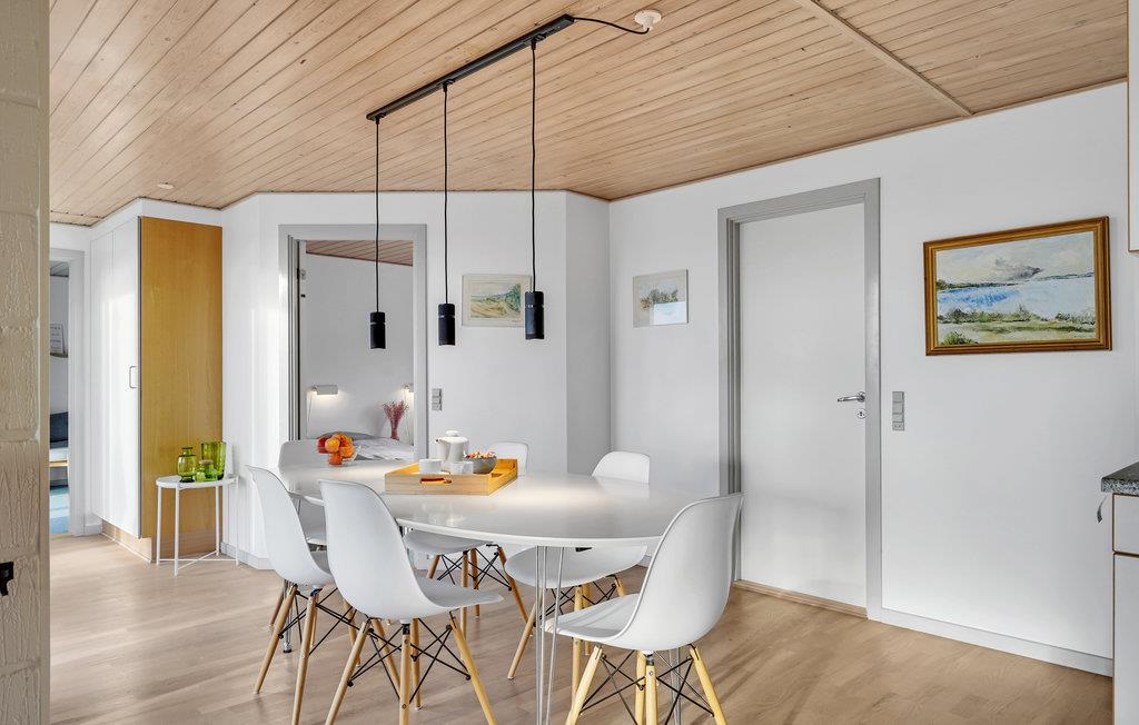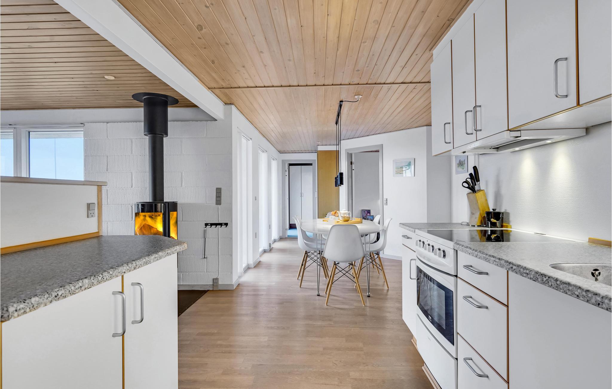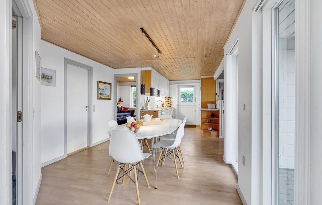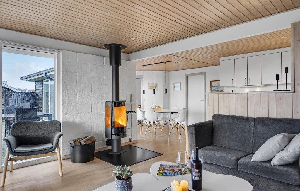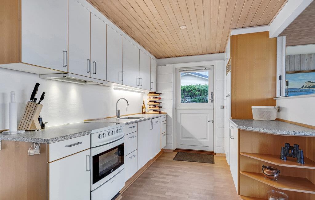 Dette nydelige sommerhus er det perfekte sted at komme på afstand af hverdagen og lade batterierne op under en masse kvalitetstid med familien. Husets hjerte er den hyggelige opholdsstue med brændeovn, fjernsyn og direkte udgang til terrassen. Køkkenet ligger i åben forbindelse med stuen, således at feriekokken/kokkene kan holdes med selskab under madlavningen.
