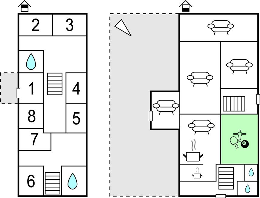 Soveværelse (nr. 8) - 2 Sovepladser. (Enkeltseng(e)).