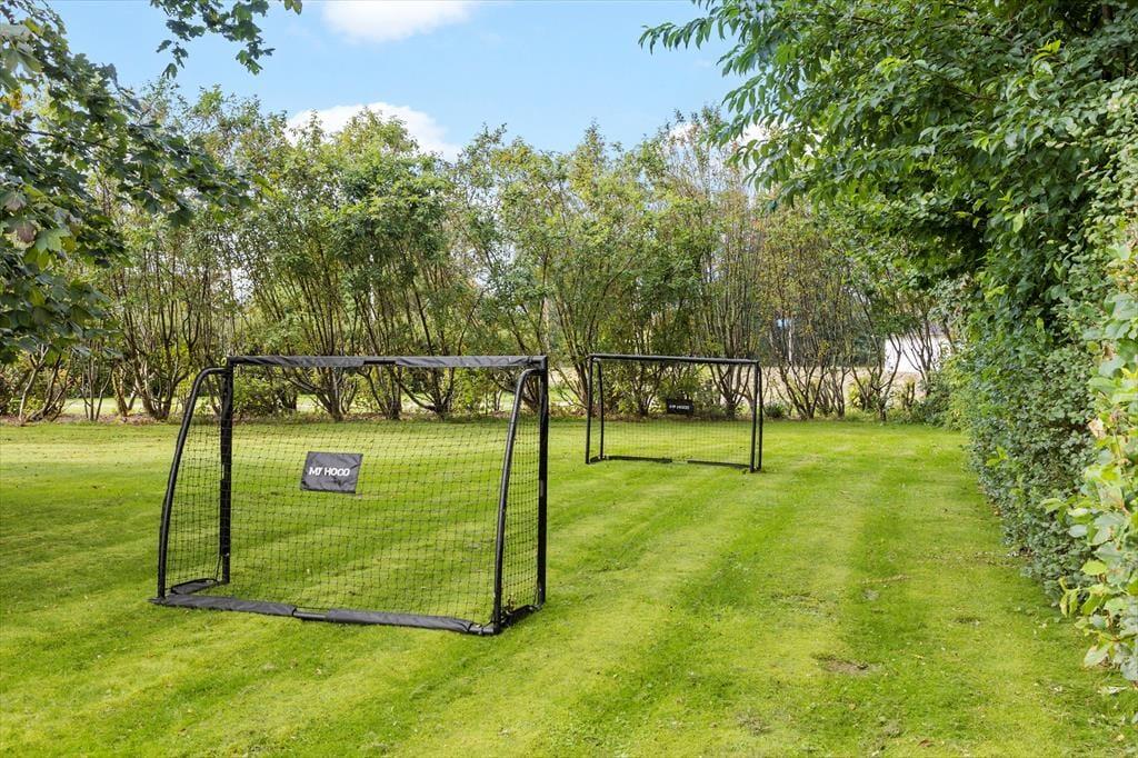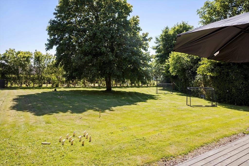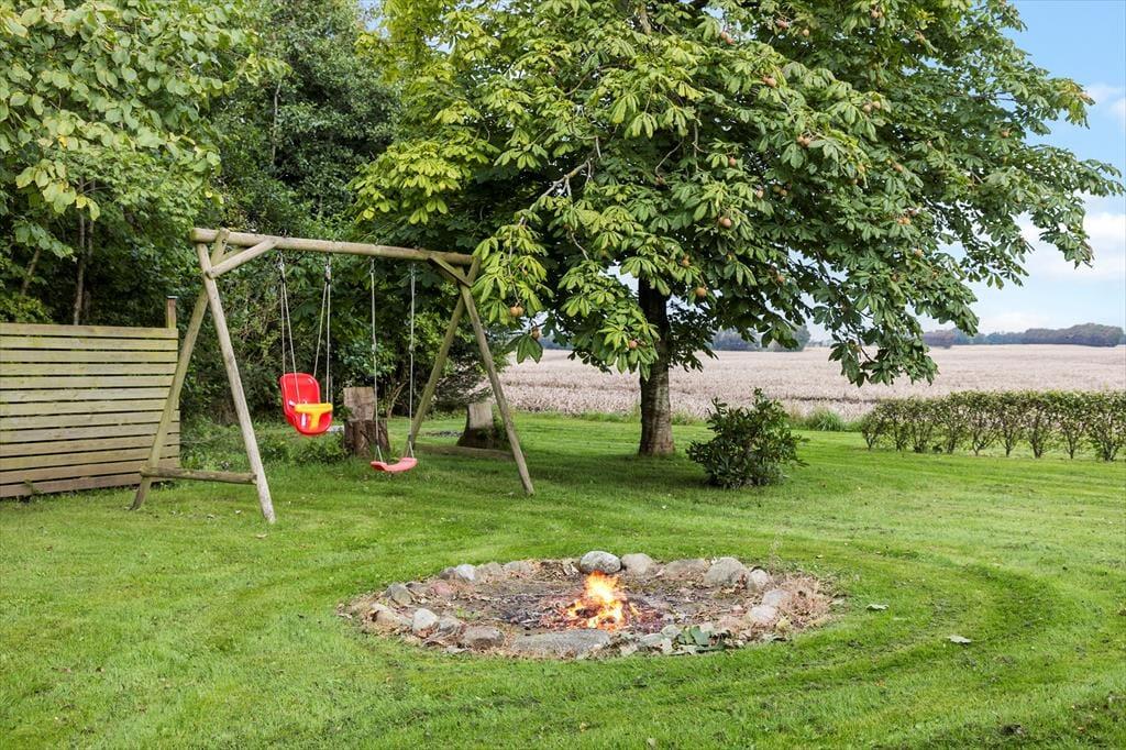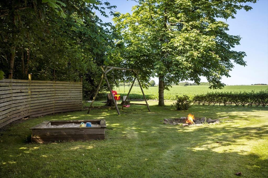 Med sine 2500 m2 er havegrunden dejligt stor, og den fungerer som en herlig oase, når der er sommerstemning i luften. Legebørn i alle aldre kan fryde sig over, at der er masser af plads til at spille bold og vikingespil på græsplænen, og gyngestativet, sandkassen og bålstedet vil garanteret også blive et hit. Hvis du trænger til at sidde helt i zen i en god havestol, er der flere terrassearealer at vælge imellem – inklusiv et overdækket område såvel som et grusbelagt areal, der ligger godt i læ af plankeværk og udhuse.