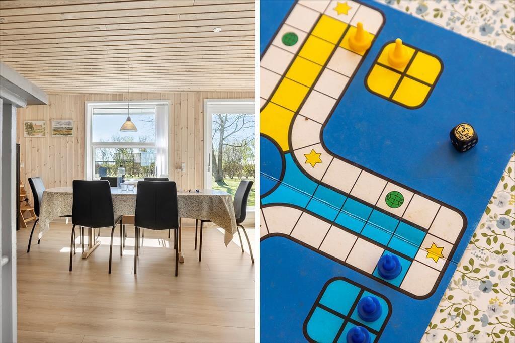 Huset ligger smukt placeret i den nordlige ende af Hostrup Strand – lige ud til åbne marker og bare en kort gåtur fra Limfjorden. I det fredelige sommerhusområde er der grønne, kuperede arealer og gode legepladser, hvor børnene kan boltre sig. Egnens allerbedste åndehul er nu selvfølgelig stranden, hvor I kan bade, gå tur eller bare sidde helt roligt og nyde udsigten over Venø Bugt. Fra sommerhuset tager det mindre end et kvarter at køre til den fine Spøttrup Borg, og den fredede halvø Kås Hoved er endnu tættere på, hvis du vil ud at vandre eller måske fiske i de naturskønne omgivelser.