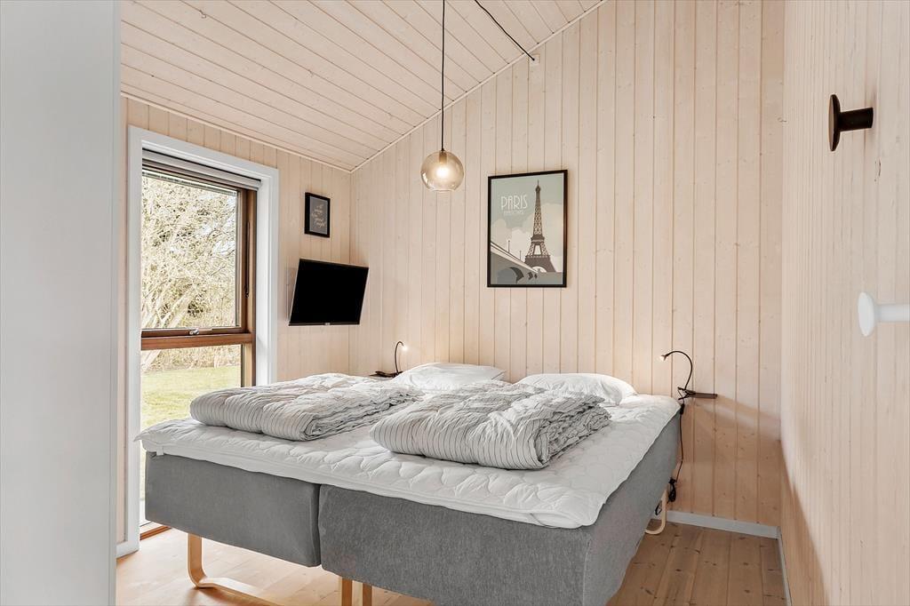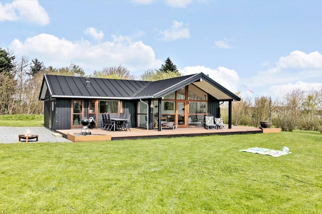 Hyggeligt sommerhus i Sydsalling med brændeovn, vildmarksbad og kun 300 m til strand.