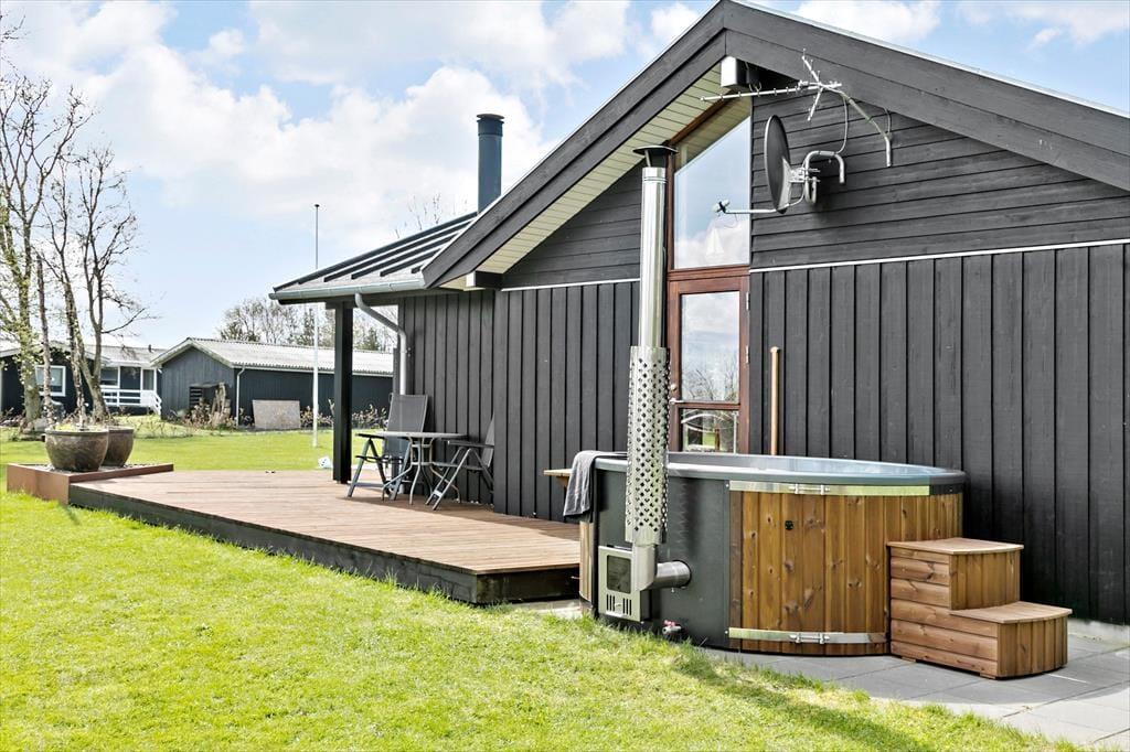 Hyggeligt sommerhus med vildmarksbad nær strand