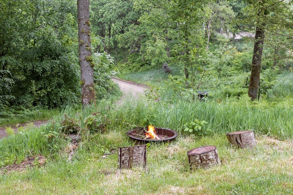 Rundt om huset har I flere terrasser at vælge imellem. Den ene er overdækket og næsten helt aflukket, så den fungerer som en slags udestue og er med til at udvide udesæsonen – og om sommeren er den perfekt om aftenen, hvis I gerne vil nyde udelivet, men samtidig have tag over hovedet. Om dagen kan I slænge jer på den store og åbne terrasse mod syd, og ved bagindgangen kan I kigge lige op i trækronerne, når I slænger jer på den hævede terrasse.