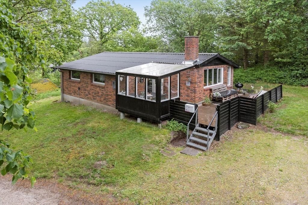 Hostrup Strand og Gyldendal Havn ligger få hundrede meter væk, når I holder ferie i dette velrenoverede sommerhus. Det ligger højt i det kuperede landskab på en 1000 m2 stor grund, der indrammes smukt af høje løvtræer, så det føles nærmest som at holde ferie i skovens dybe, stille ro, helt tæt på Limfjorden.