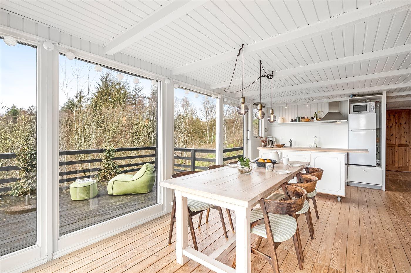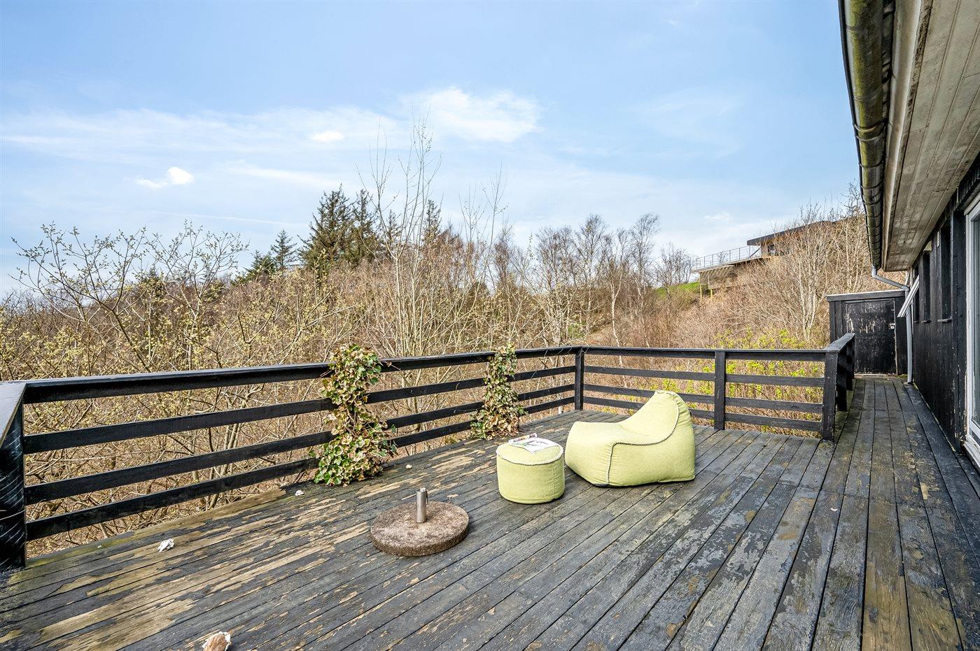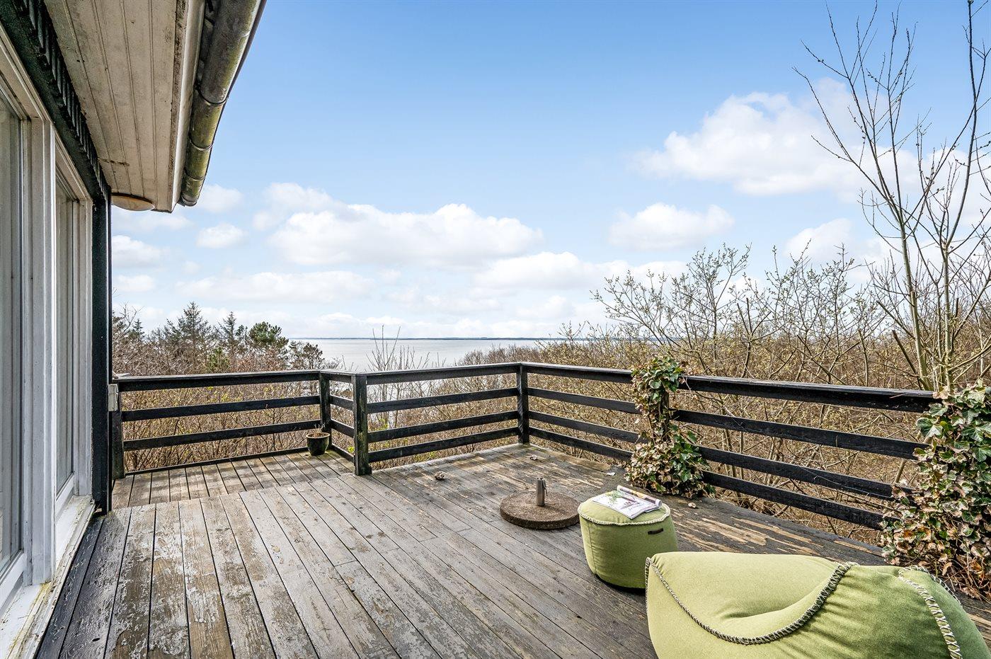 Fra husets meget store terrasse, med gode læforhold, er der panoramaudsigt over området og Limfjorden. På terrassen kan I bl.a. nyde aftensmaden tilberedt på grillen mens solen går ned over Limfjorden.