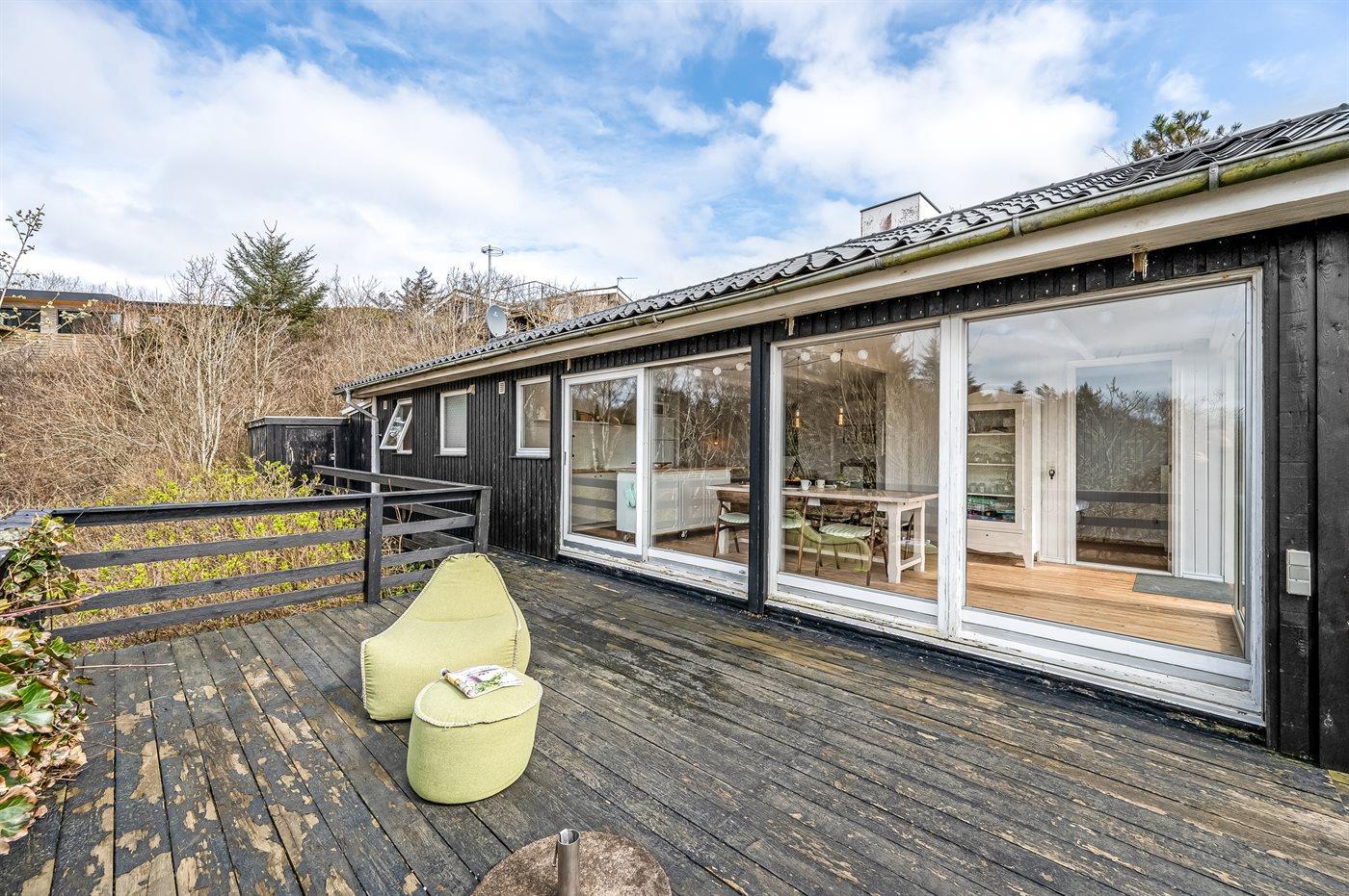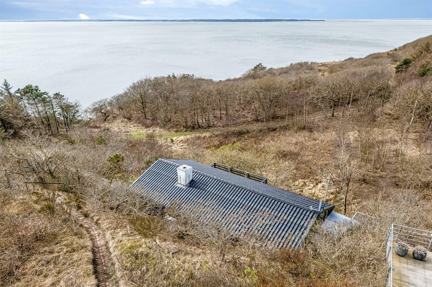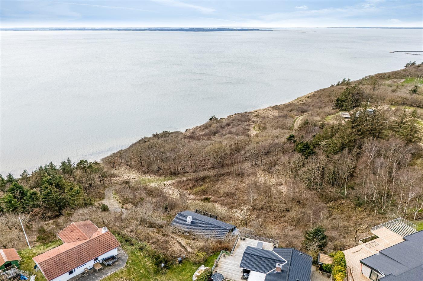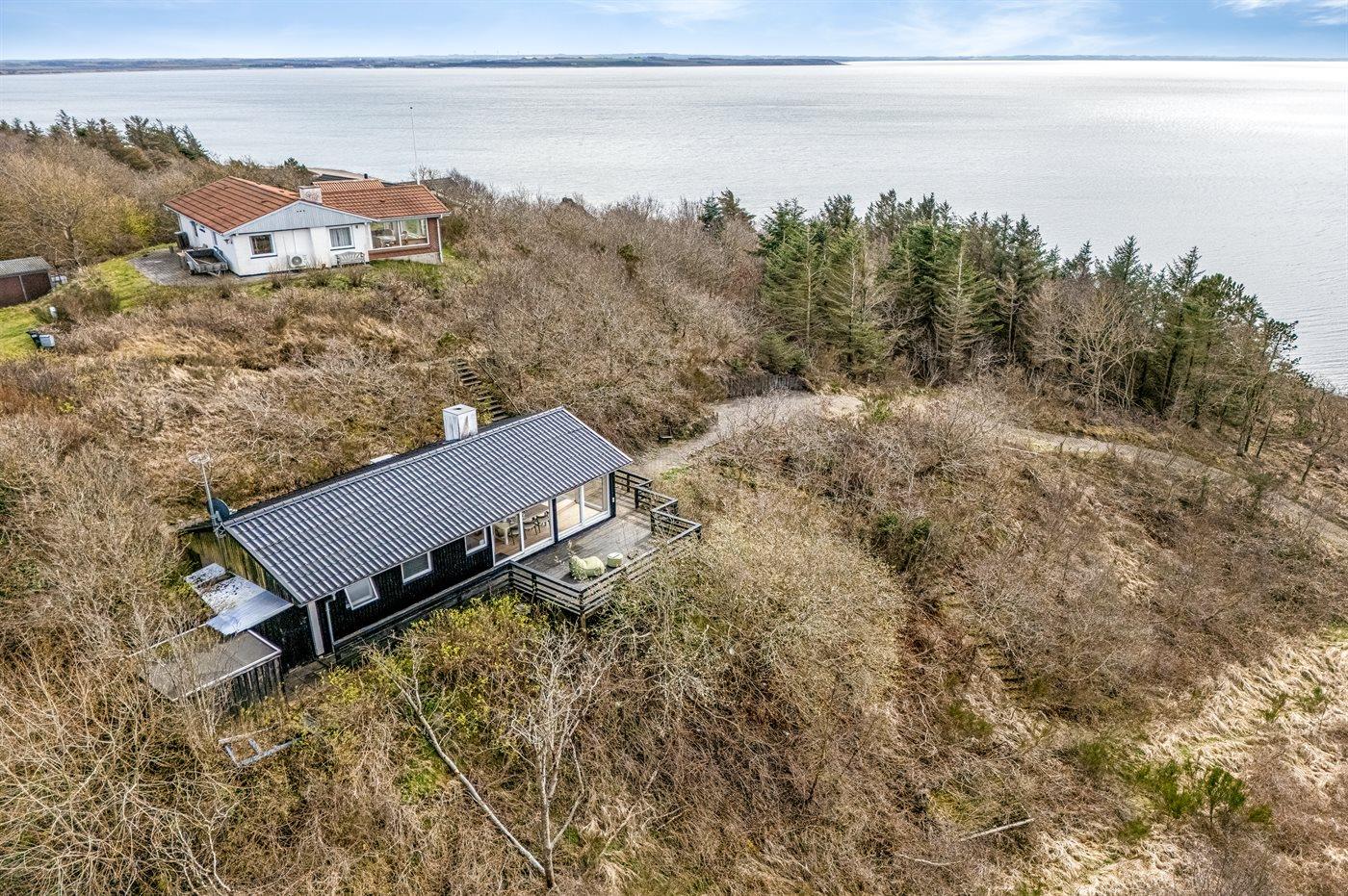 Med en fantastisk panoramaudsigt over Limfjorden finder I dette sommerhus i naturskønne omgivelser. Huset er højt beliggende - på en 1200 m2 stor naturgrund i et kuperet terræn.
