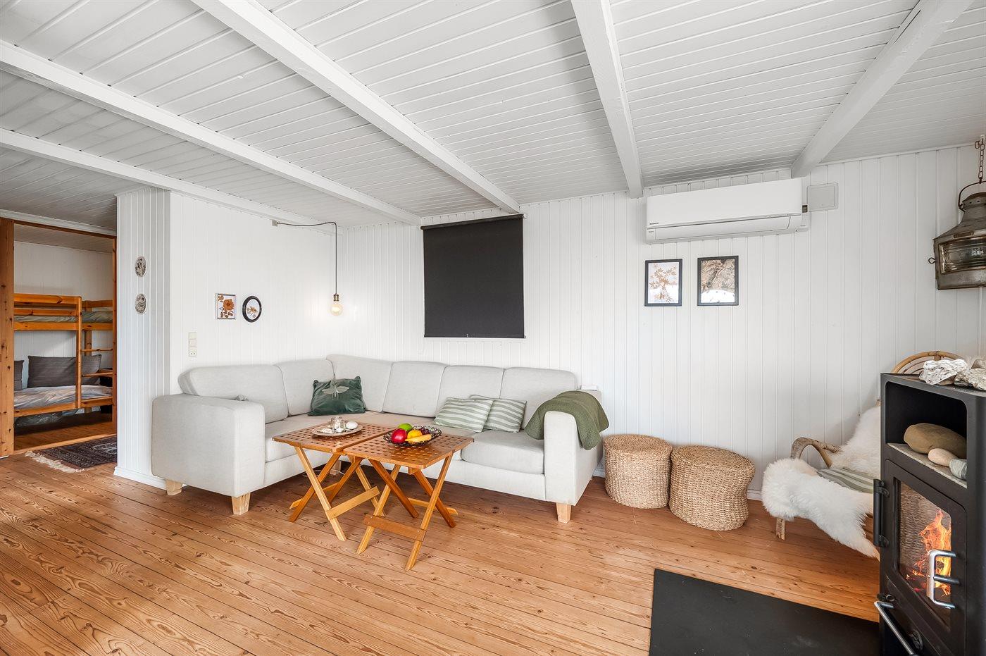 Der er i alt 3 soveværelser. Sovepladserne fordeler sig på: 4 sovepladser i dobbeltsenge. 2 sovepladser i køjeseng.