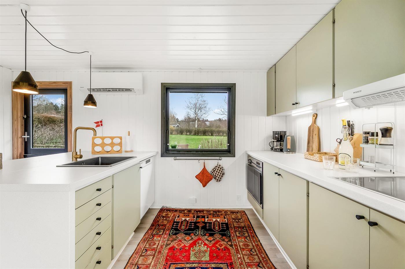 Køkkenet er udstyret med 1 køleskab. Der er 4 keramiske kogeplader, varmluftovn, mikrobølgeovn samt opvaskemaskine.