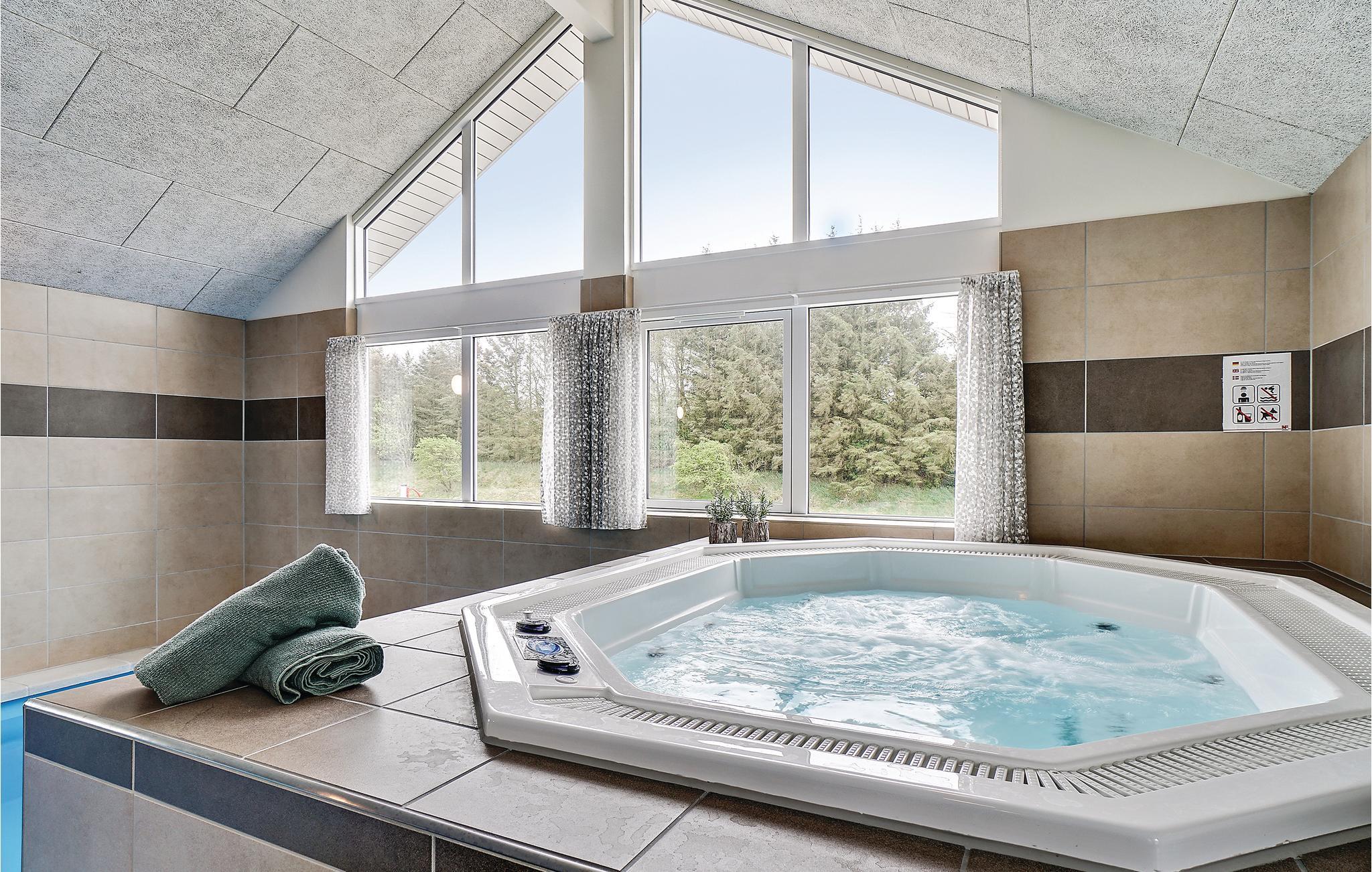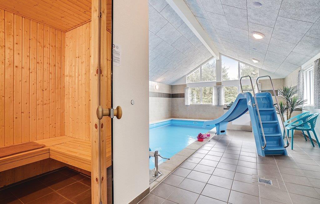 Huset har plads til hele 30 personer. Hop en tur i den 23 m² store pool eller slap af i spabadet, så længe I har lyst. Holder I ferie i dette feriehus, er der ingen grænser for, hvor længe vandhunde og badeglade gæster kan boltre sig i husets eget poolområde. Her er også en dejlig sauna og en vandrutsjebane.