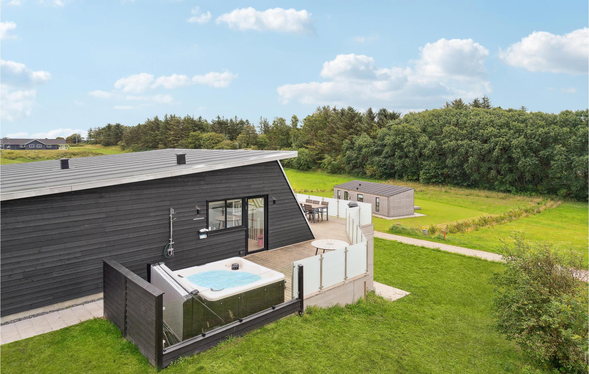 Skønt sommerhus med sauna, jacuzzi, aktivitetsrum og skøn solterrasse.