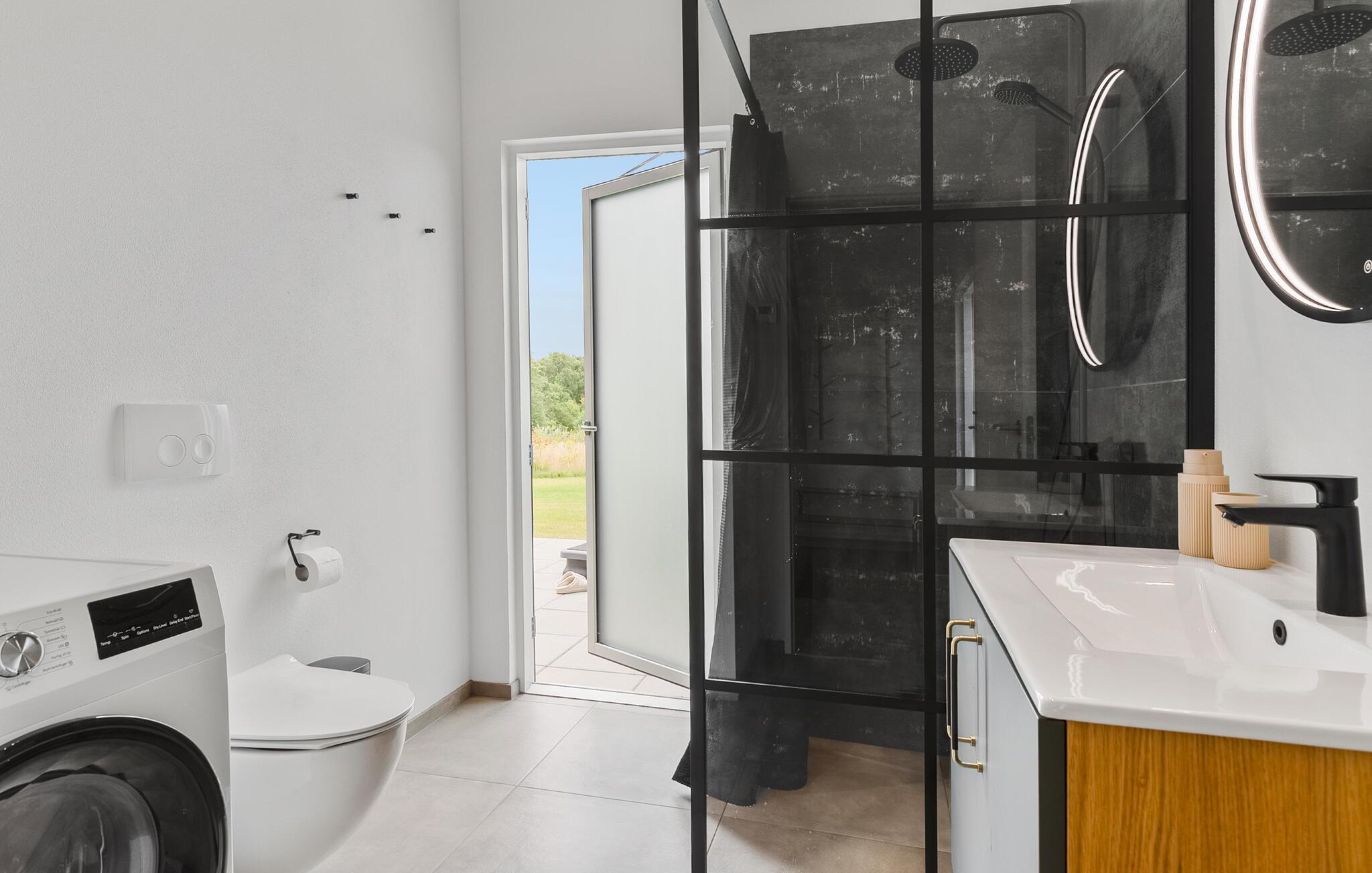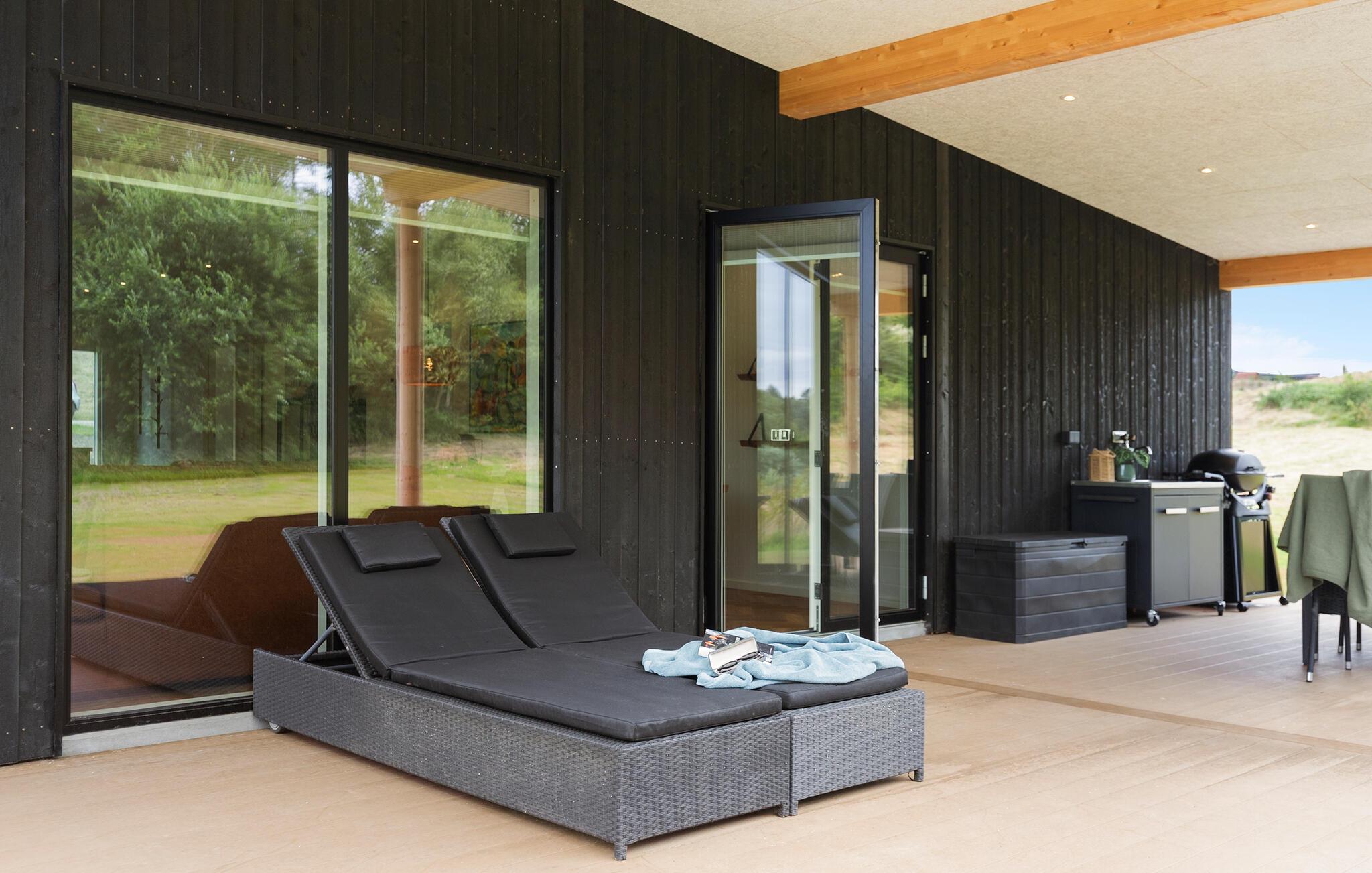 Moderne feriehus ved Hostrup Strand med sauna, udendørs spa og kort afstand til stranden.