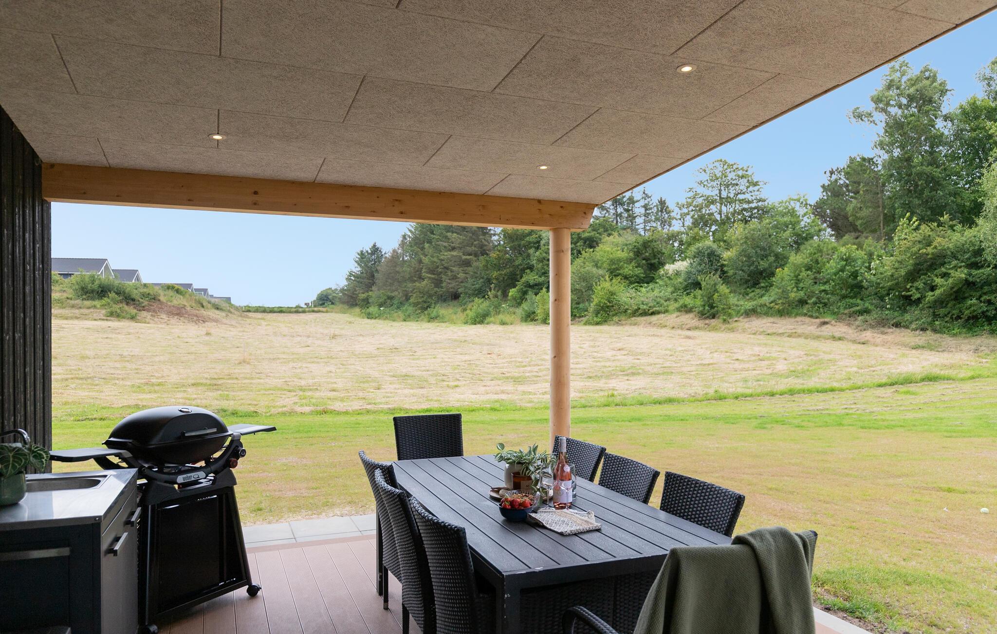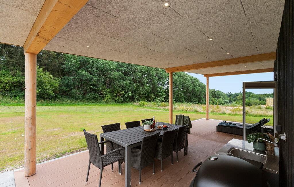 Et særligt højdepunkt er den overdækkede terrasse, som giver jer utallige muligheder for at nyde den friske luft fuldt ud. Spis udendørs eller slap af under stjernerne. Om aftenen inviterer grillen til hyggelige aftener, hvor I kan slutte dagen af ??i en hyggelig atmosfære. For endnu mere afslapning er der en sauna og et udendørs spabad til rådighed - skønne steder at forkæle jeres krop og sind efter en begivenhedsrig dag.