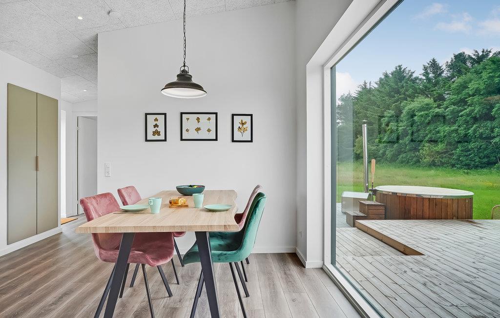 De store vinduespartier ved spisebordet sørger for en fantastisk udsigt til landskabet, og så har I også direkte adgang til terrassen herfra - derfor er stuen også et af højdepunkterne ved dette sommerhus. Det moderne udstyr og de stilfulde møbler gør det ekstra behageligt at holde ferie her.