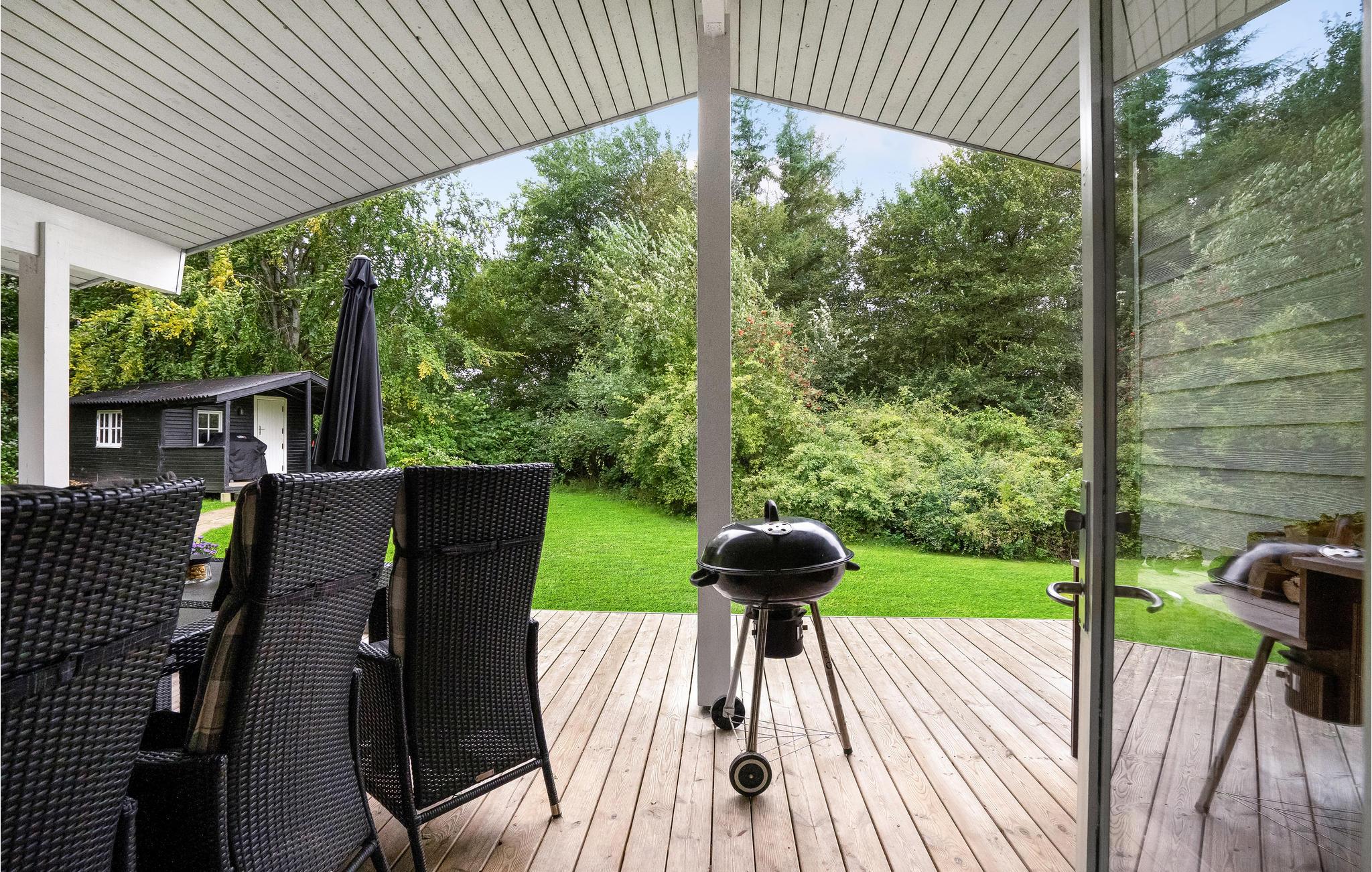 Hyggeligt sommerhus tæt ved Limfjorden med stor naturgrund, bålsted og overdækket terrasse, perfekt til familie og afslapning.