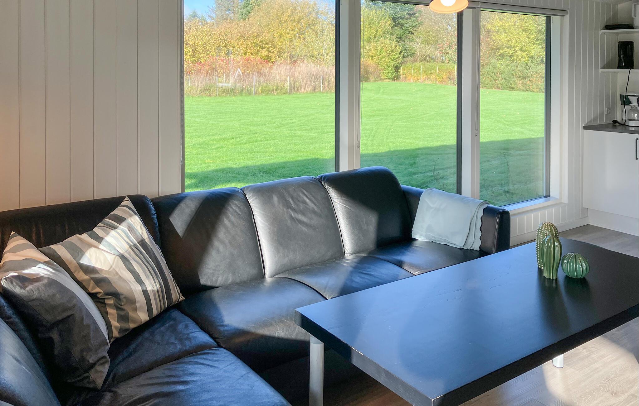 Med 3 soveværelser kan huset rumme op til 5 personer. De store vinduer slipper meget dagslys ind i huset og giver en vidunderlig udsigt over landskabet. På køligere dage kan I slappe af ved brændeovnen i stuen og lytte til flammernes knitren.