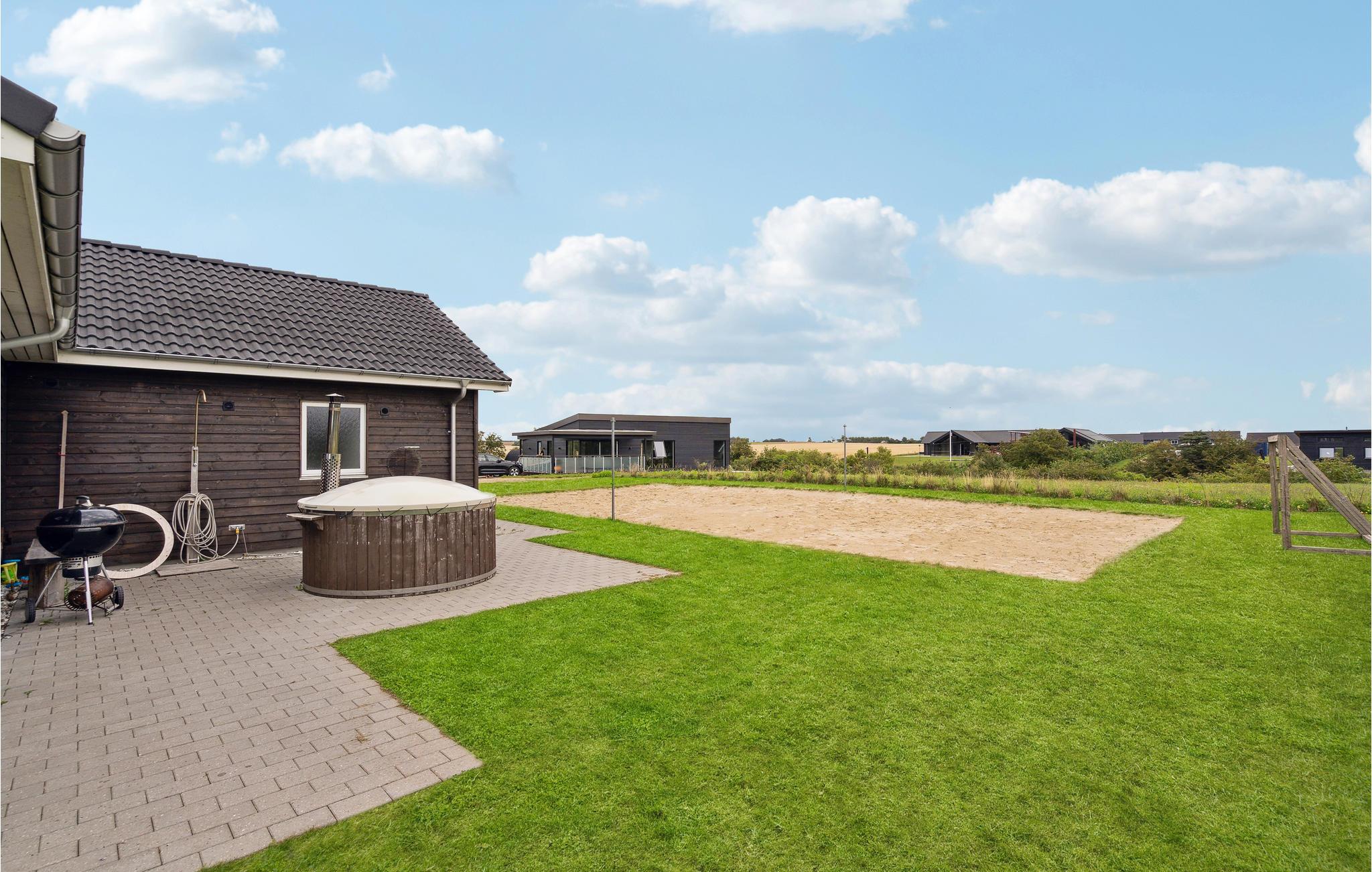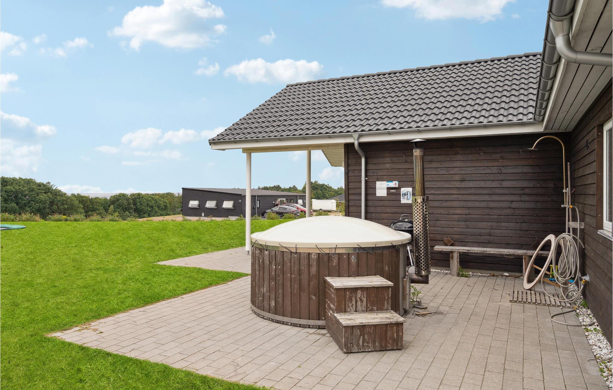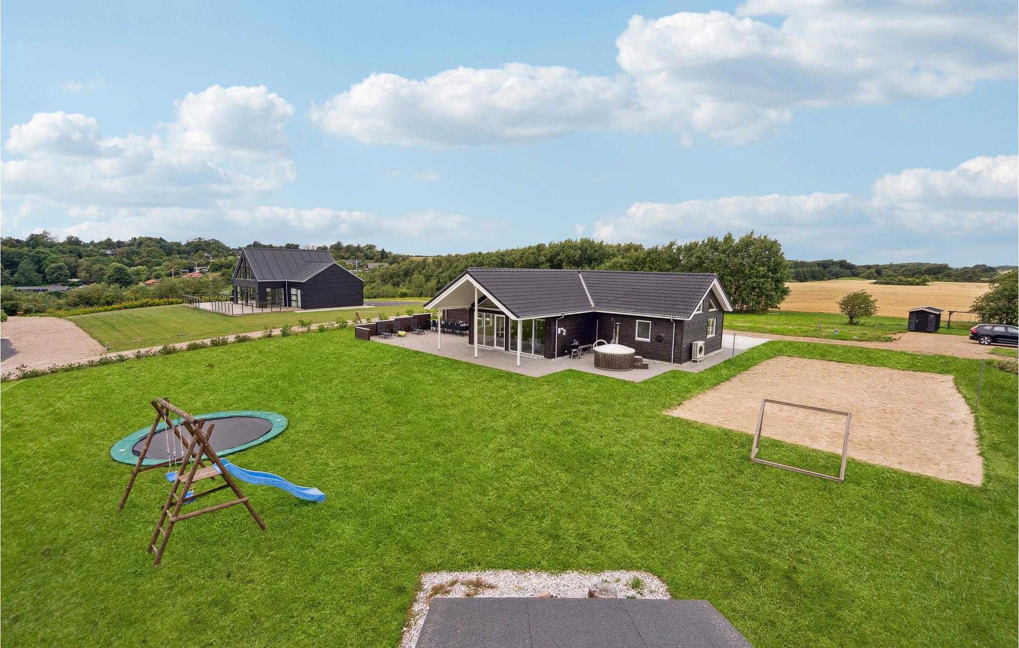 Moderne sommerhus ved Hostrup Strand med spabad, sauna og aktivitetsrum for hele familien.