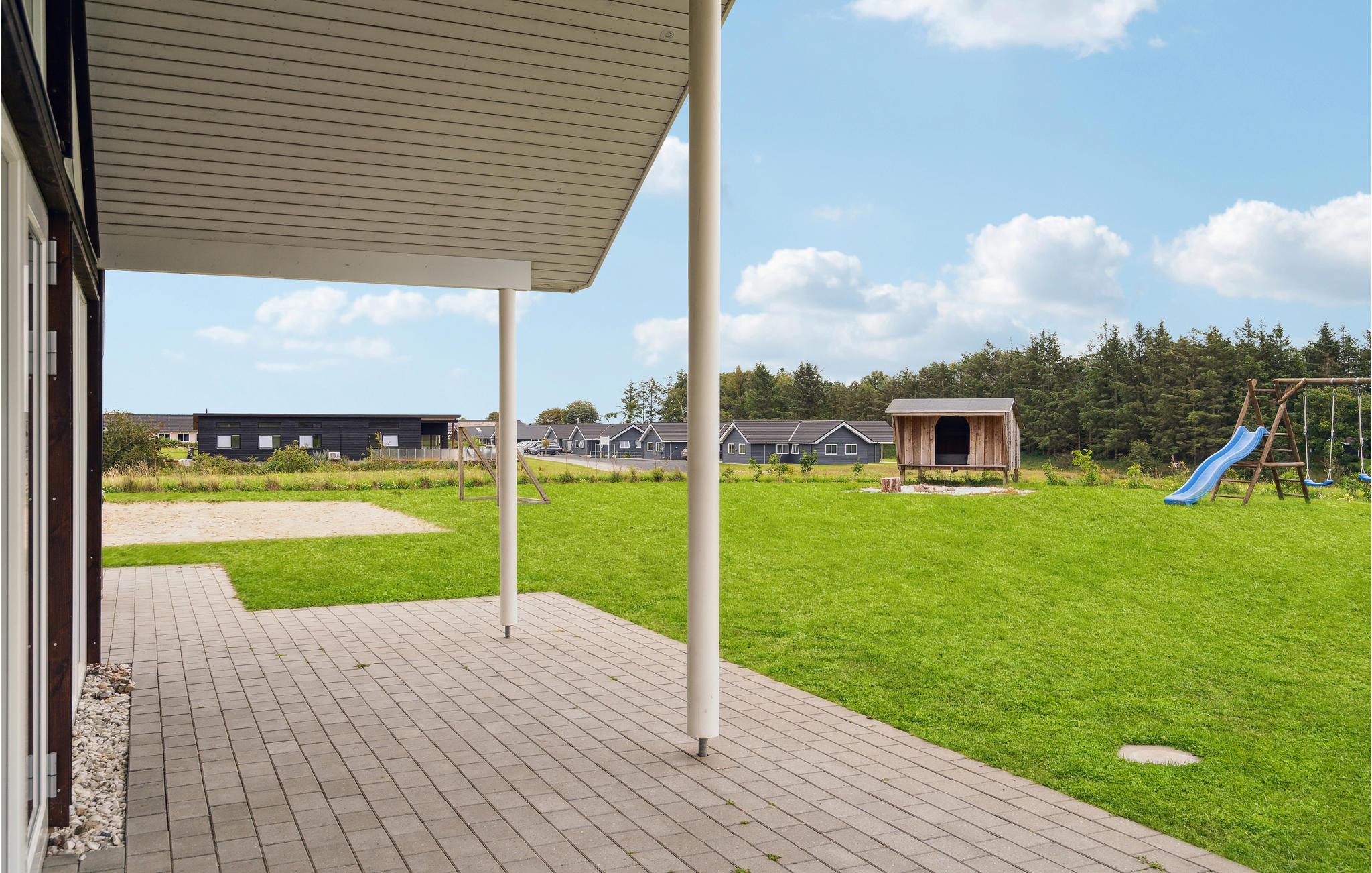 Tilbring mange afslappende timer på terrassen, mens børnene leger på gyngerne eller rutschebanen på den store græsplæne. Masser af muligheder for udeliv med f.eks. vildmarksbad til 6 personer, shelter, terrasse, beachvolley bane m.v. Sti direkte fra huset ned til vandet uden at man skal ud på en vej.