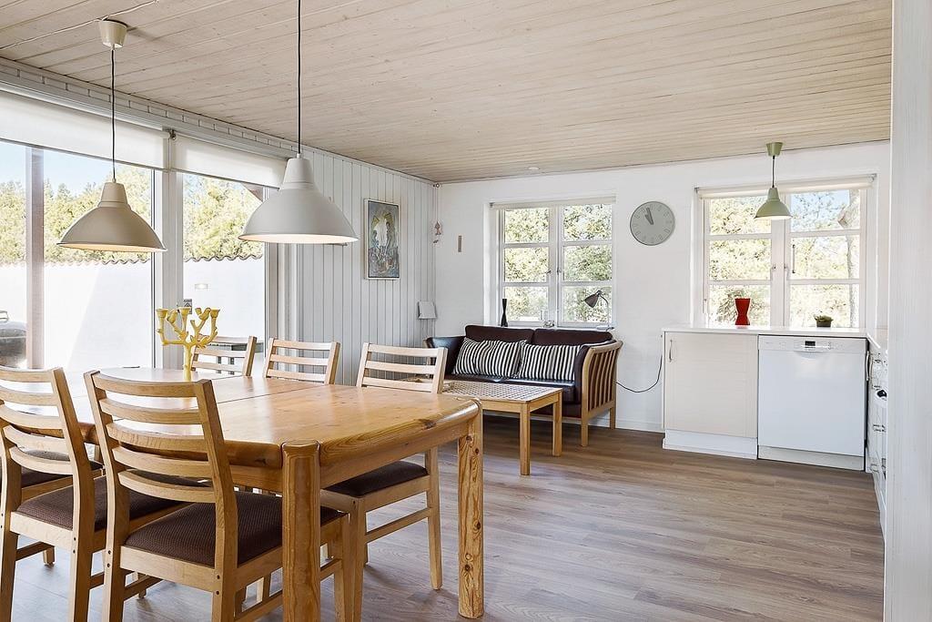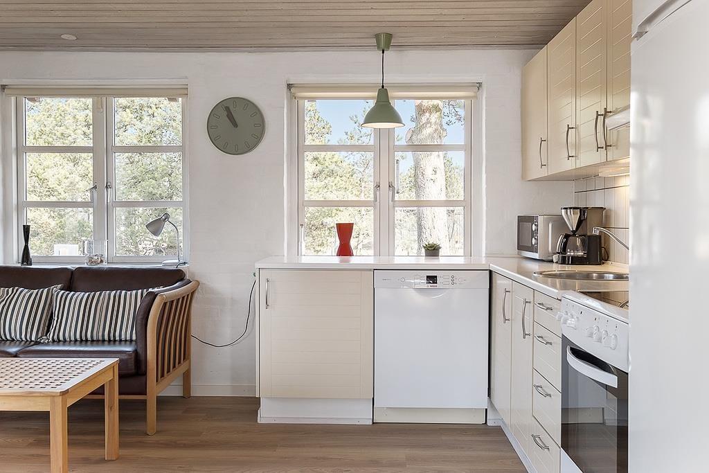 Sommerhuset hører ikke til blandt de største, men med det tilhørende anneks kan det uden problemer rumme både en stor familie eller to par, som gerne vil tilbringe ferien sammen. I hovedhuset finder man entre, køkken, opholdsrum, badeværelse med bruser og tre værelser, mens der i annekset er endnu et soveværelse og et badeværelse med bruser og tilhørende sauna. Gode og funktionelle rammer for enhver ferieform. I stuen kan man samles til hygge foran brændeovnen og tv’et med både danske, tyske og skandinaviske kanaler, og vil man gerne ud at opleve områdets mange seværdigheder og attraktioner, er det nemt og hurtigt at finde oplysninger og informationer på det gratis og trådløse internet; husk blot at medbringe pc eller tablets hjemmefra. Om sommeren kan man åbne op til den skønne have fra spisehjørnet og nyde både maden og solskinstimerne på de gode terrasser.
