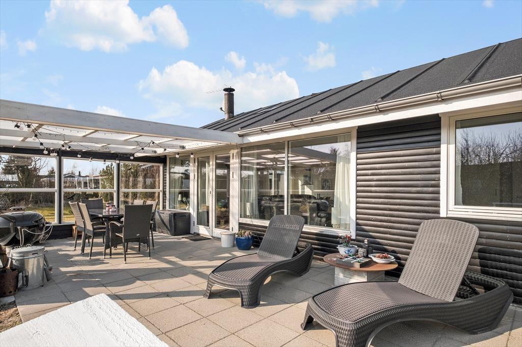 Huset har en stor lækker græsplæne, der er perfekt til alle former for leg og spil uanset alder. De mindste hygger sig med rutschebane og gynge. Den overdækkede terrasse forlænger de skønne sommeraftner, hvor man har hygget sig med en god grillmiddag og sidde og nyde de lyse aftner med et godt glas vin eller en skøn kop kaffe. Der god afskærmning for privatlivet så bedre bliver det næsten ikke - det her er stress-fri zone.