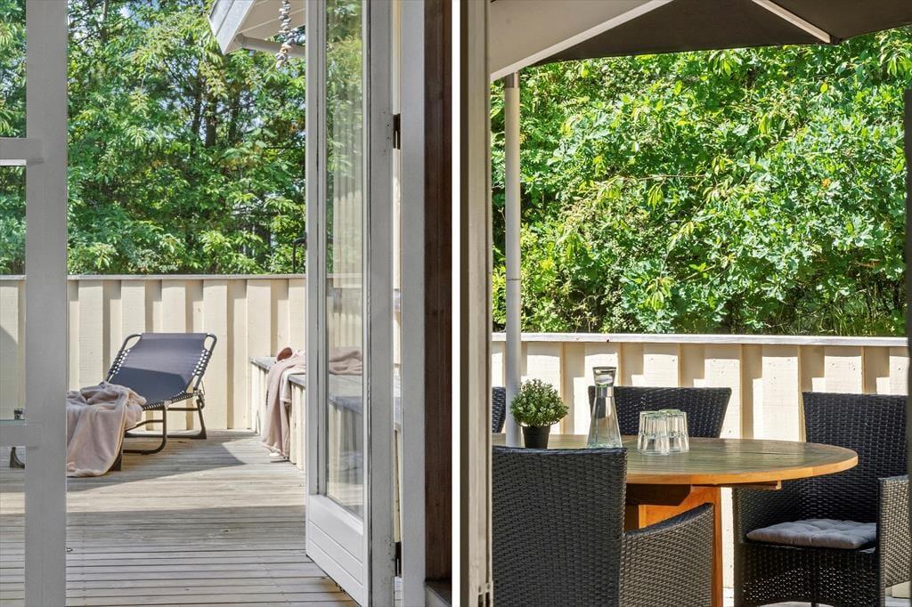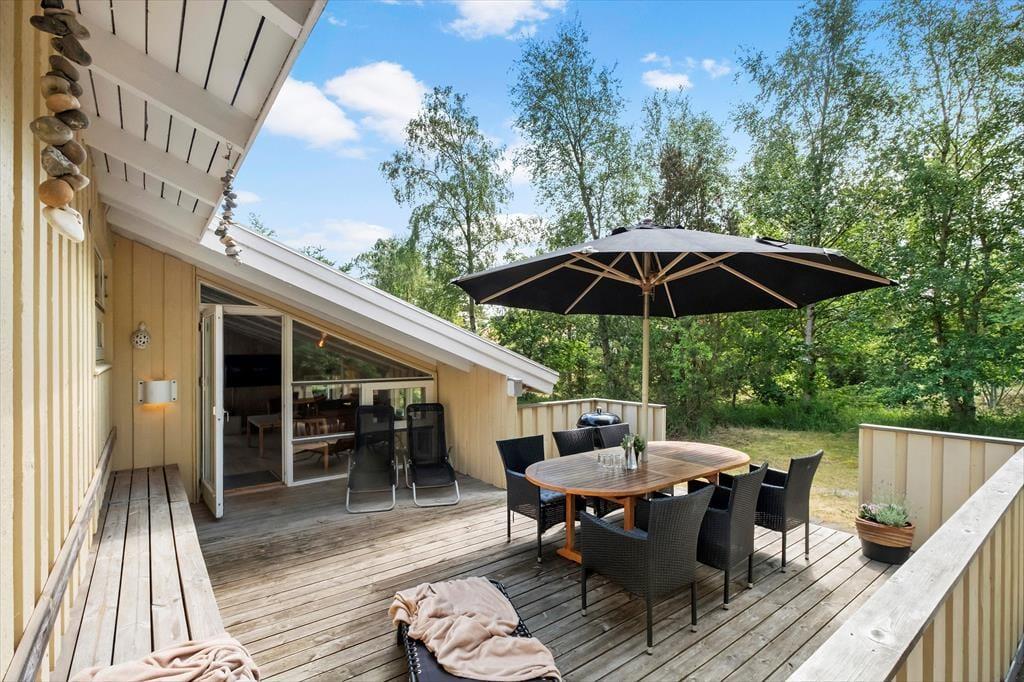 Når vejret er til det, er det oplagt at flytte dagdriverlivet ud i det fri. Terrasser er der to af, hvoraf den ene er en østvendt, overdækket terrasse, mens den anden peger mod sydvest. Med andre ord er der gode chancer for at finde en dejlig opholdsplads uanset tidspunktet på dagen, hvis I ikke foretrækker at slå jer ned på græsplænen i den store have. Uanset hvor I er, kan I nyde udsigten til grundens varierede randbeplantning, der også sørger for læ og privatliv.