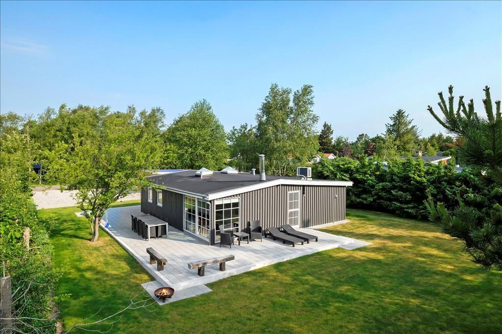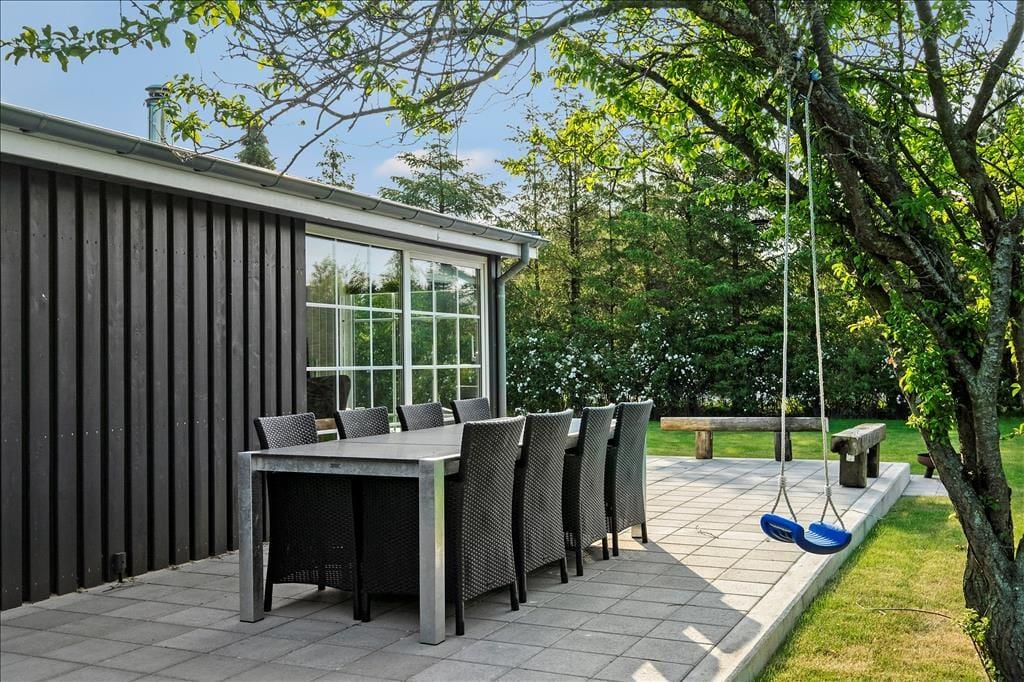 Er vejret for godt til at blive inden døre, har I heldigvis en skøn og solrig terrasse lige udenfor sommerhuset. Terrassen er stor, så der er god plads til at slikke sol i liggestolene, grille og samles omkring havebordet – når I altså ikke bruger tiden på at lege og spille havespil på græsplænen.