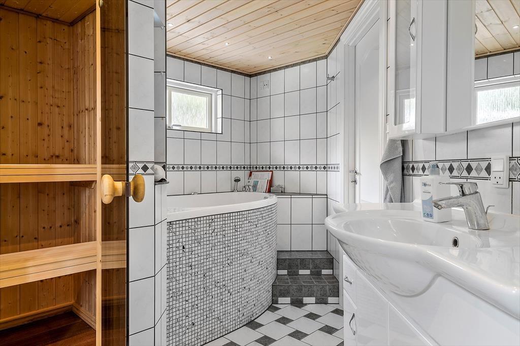 Denne fine feriebolig ligger skønt placeret i et fredeligt sommerhusområde mellem Hou og Hals. Kattegats dejlige strande venter blot 700 meter væk, og på hjemmeadressen bliver ferielivet blandt andet forsødet med spabad, sauna og brændeovn.