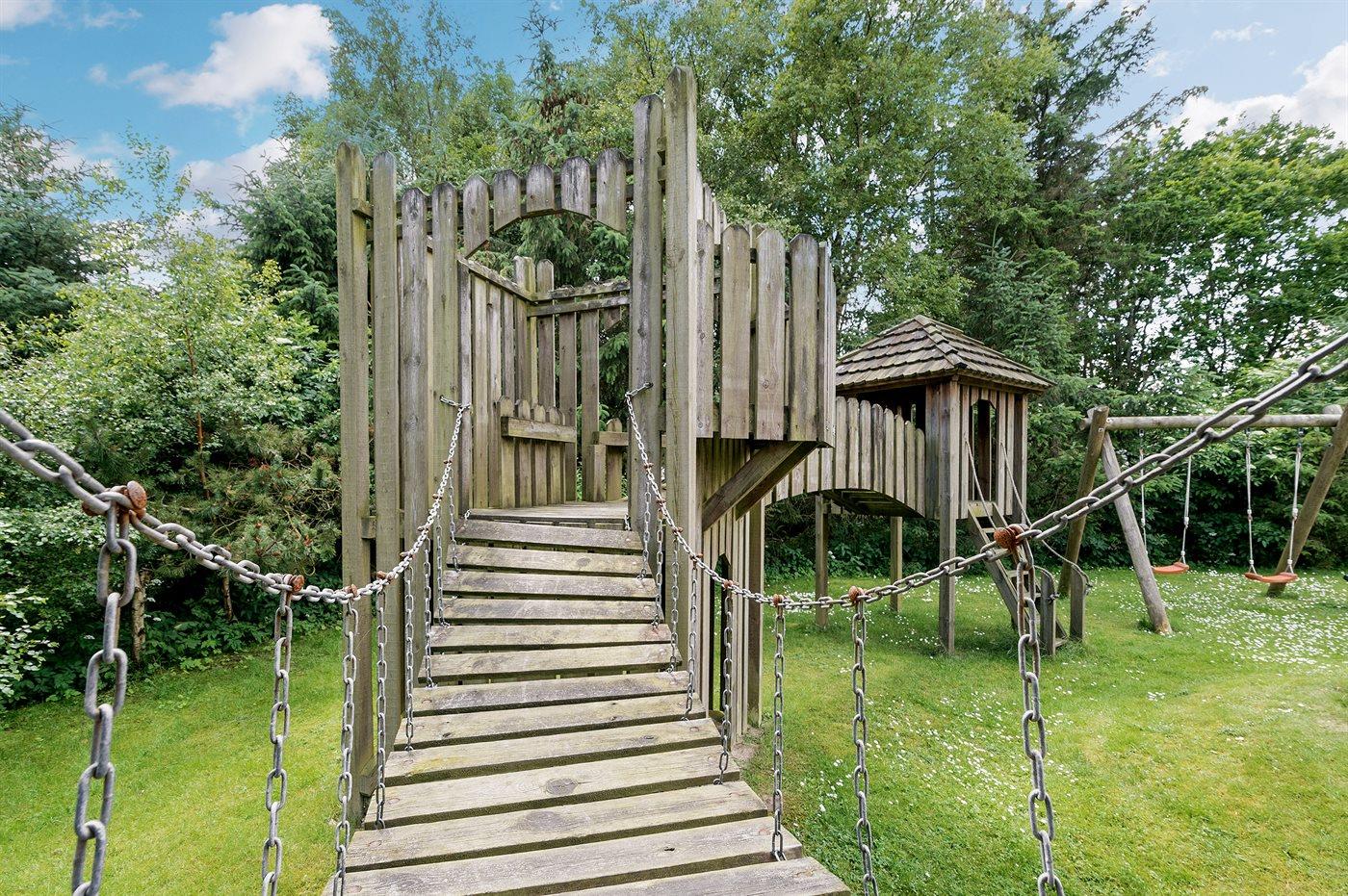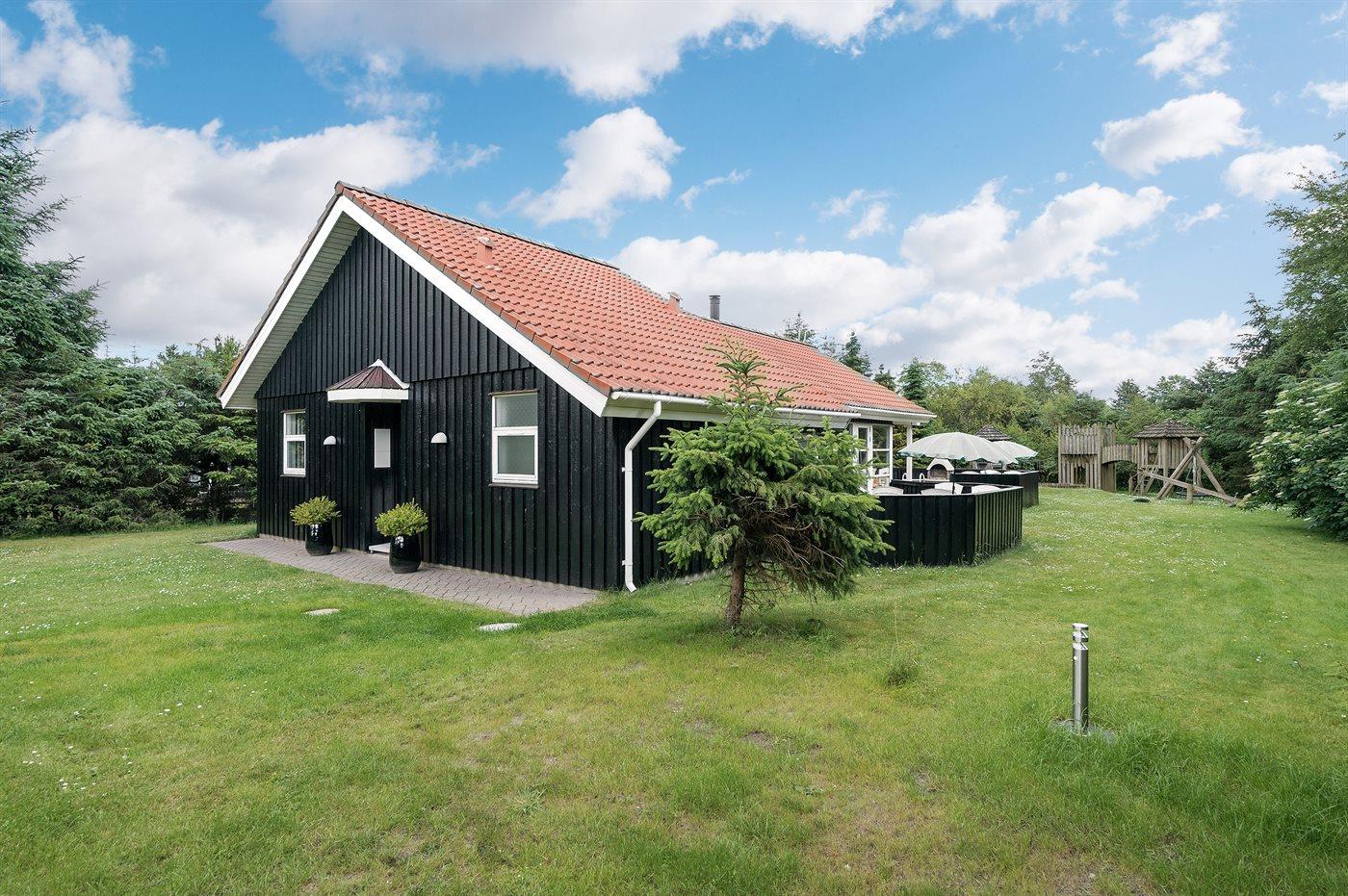 Sommerhus ved skov og strand med spa og legeplads