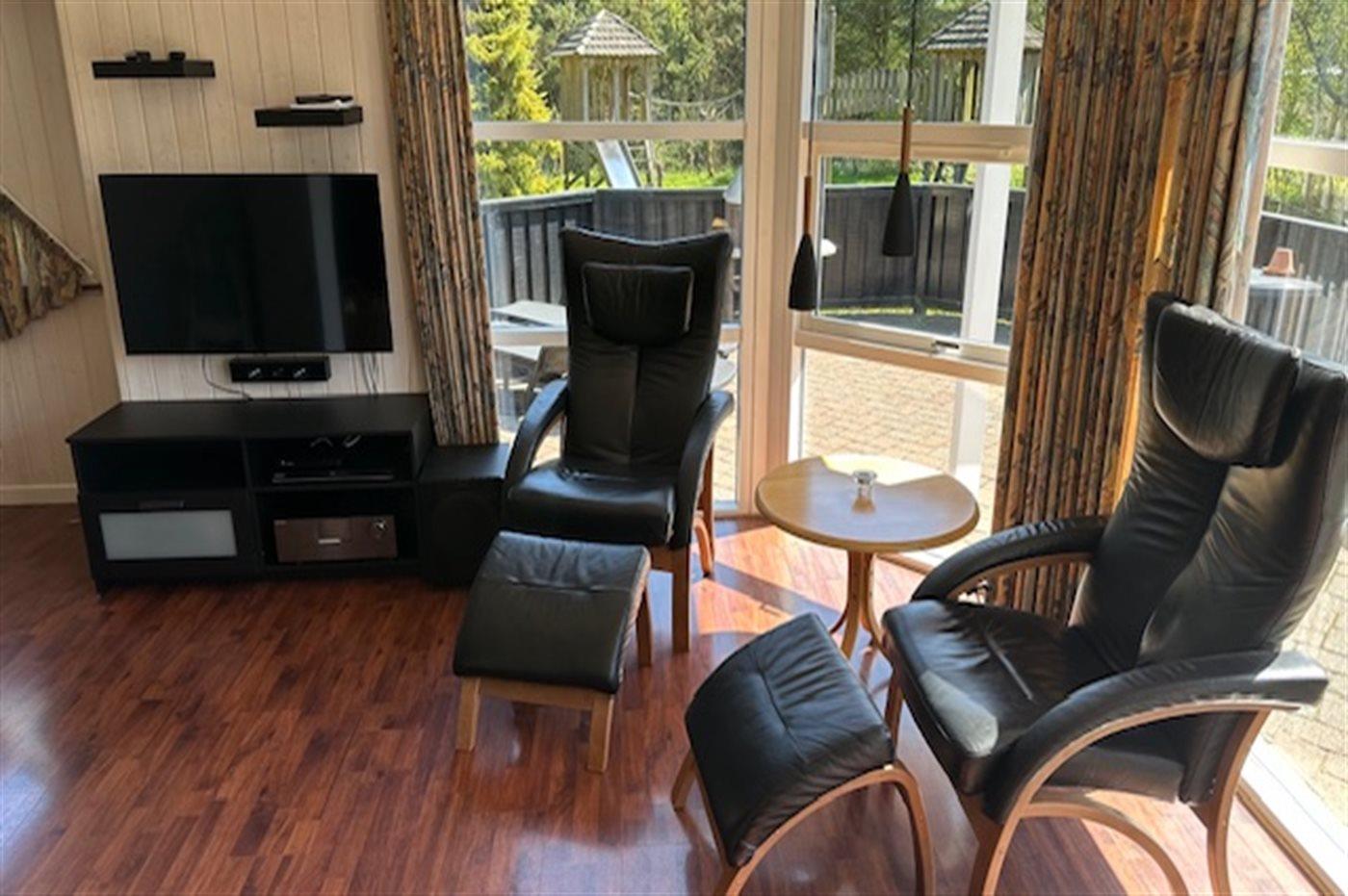 I ferieboligen er der 3 TV.2 Smart-TV. 1 Apple-TV. (Det er muligt at medbringe egen kode til Flex-TV). DVD-afspiller. (10 DVD-titler i huset). Stereoanlæg. CD-afspiller. Surroundanlæg. Playstation 2. (3 spil i huset). Der er mindst 4 danske kanaler. Mindst 4 tyske kanaler. Der er trådløst internet til rådighed.