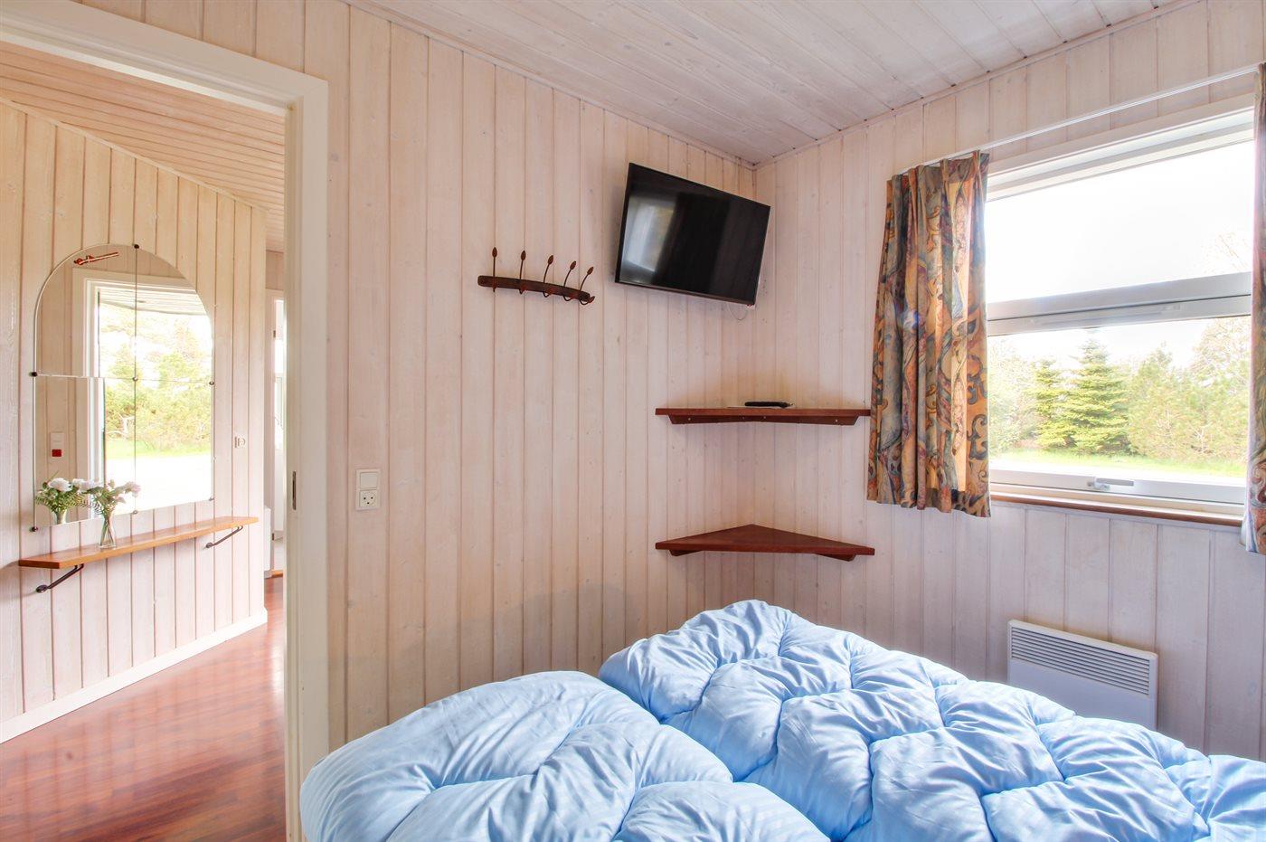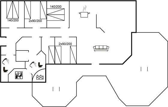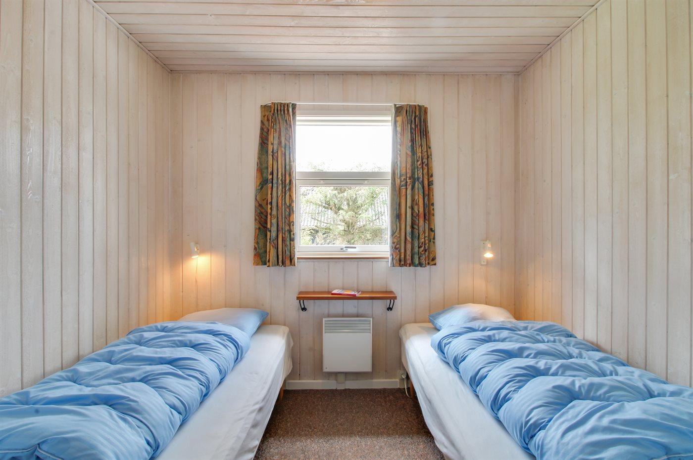 Der er i alt 5 soveværelser. Sovepladserne fordeler sig på: 4 sovepladser i dobbeltsenge. 5 sovepladser i enkeltsenge. Derudover er der 1 stk. barneseng.