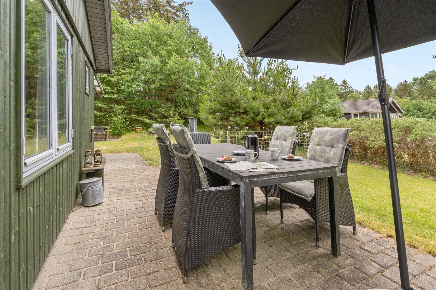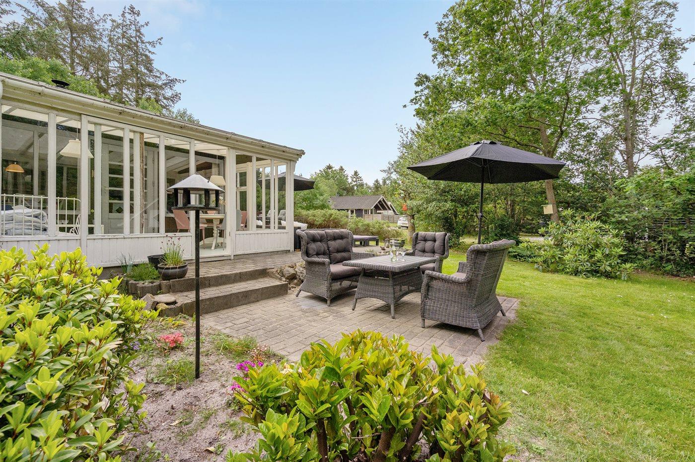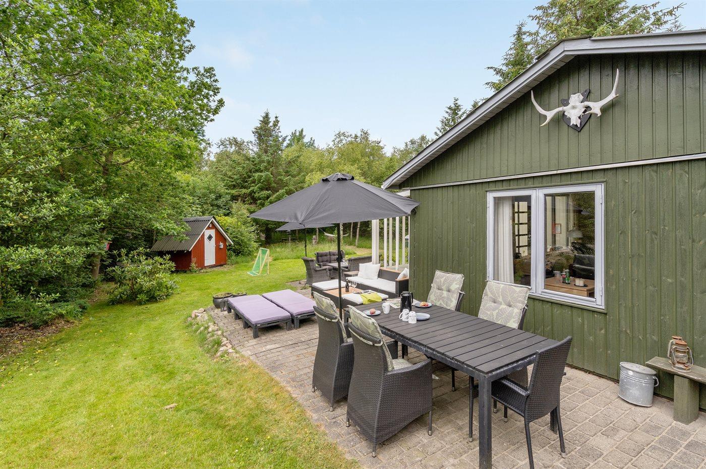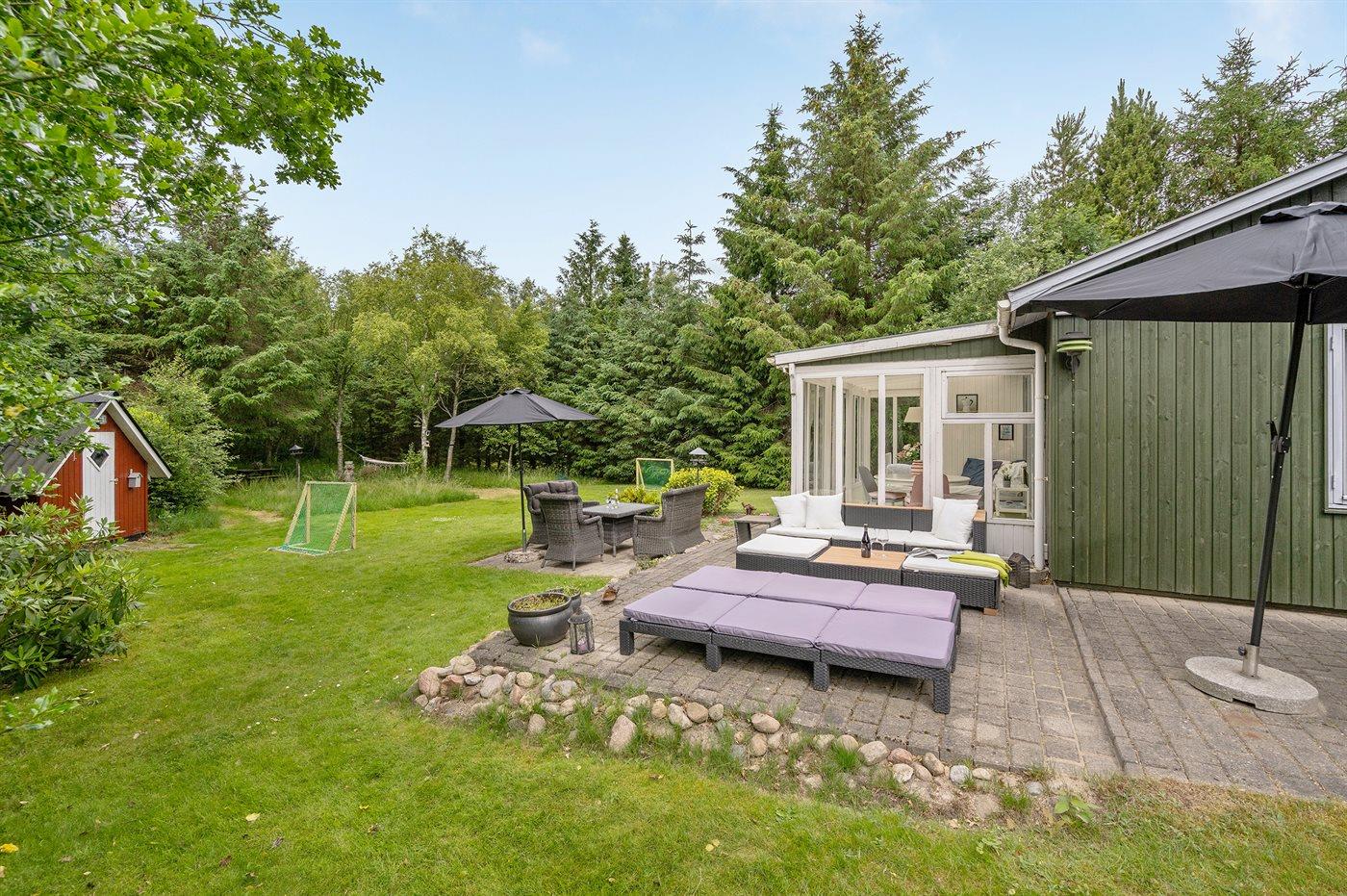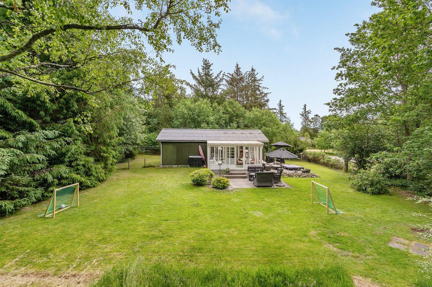 Ferieboligen er beliggende på en 2046 m² stor naturgrund. Der er 1700 m til havet. Nærmeste forretning er beliggende i en afstand af 2000 m. Der er en golfbane i en afstand af 8000 m. Til ferieboligen hører 40 m² terrasseareal. Ligeledes er der adgang til udestue. Der er redskabsrum. Fodboldmål. Der ligger en legeplads i en afstand af 400 m. Bålsted. Grill til rådighed. Parkering ved ferieboligen.