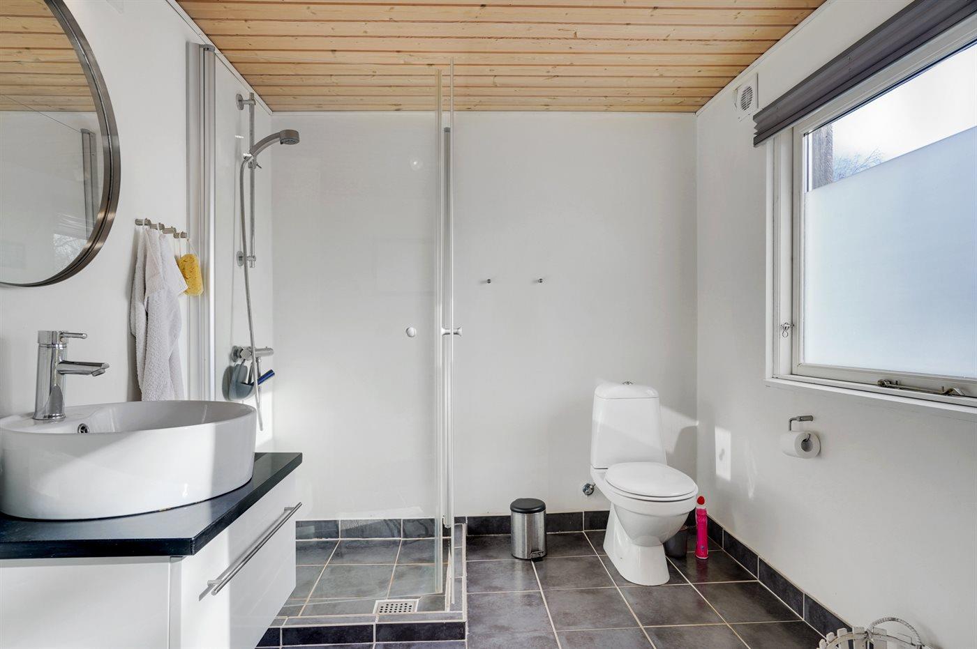 Der er 1 badeværelse med bruseniche og 1 toilet.. Der er gulvvarme på 1 badeværelse.