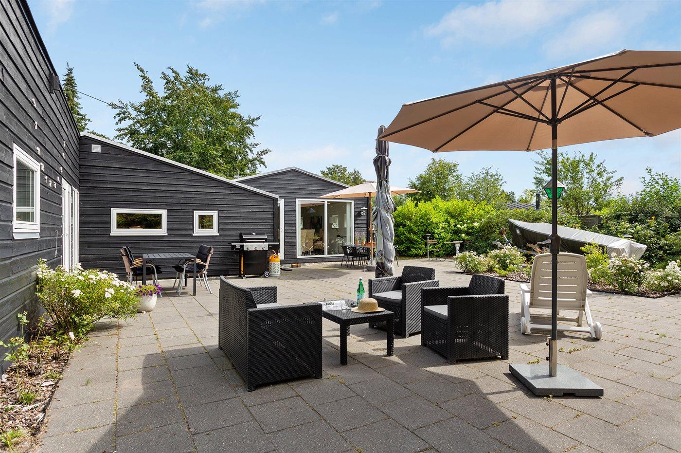 Fint sommerhus i rolige omgivelser med stor terrasse og moderne faciliteter nær Hals og Hou.