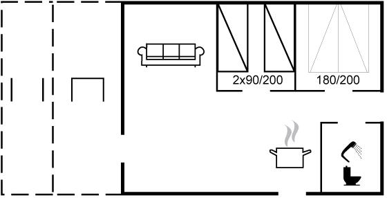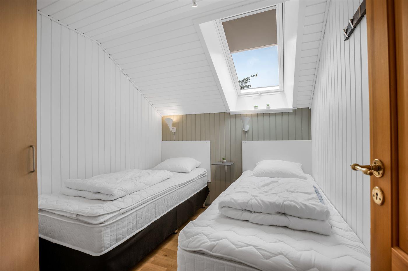 Der er i alt 2 soveværelser. Sovepladserne fordeler sig på: 2 sovepladser i dobbeltseng. 2 sovepladser i enkeltsenge.