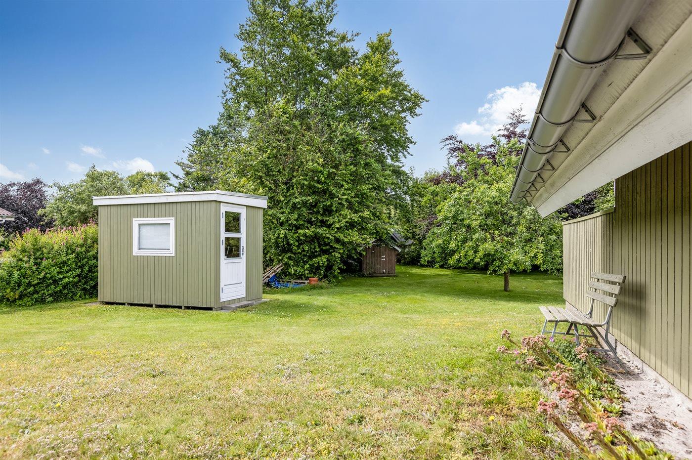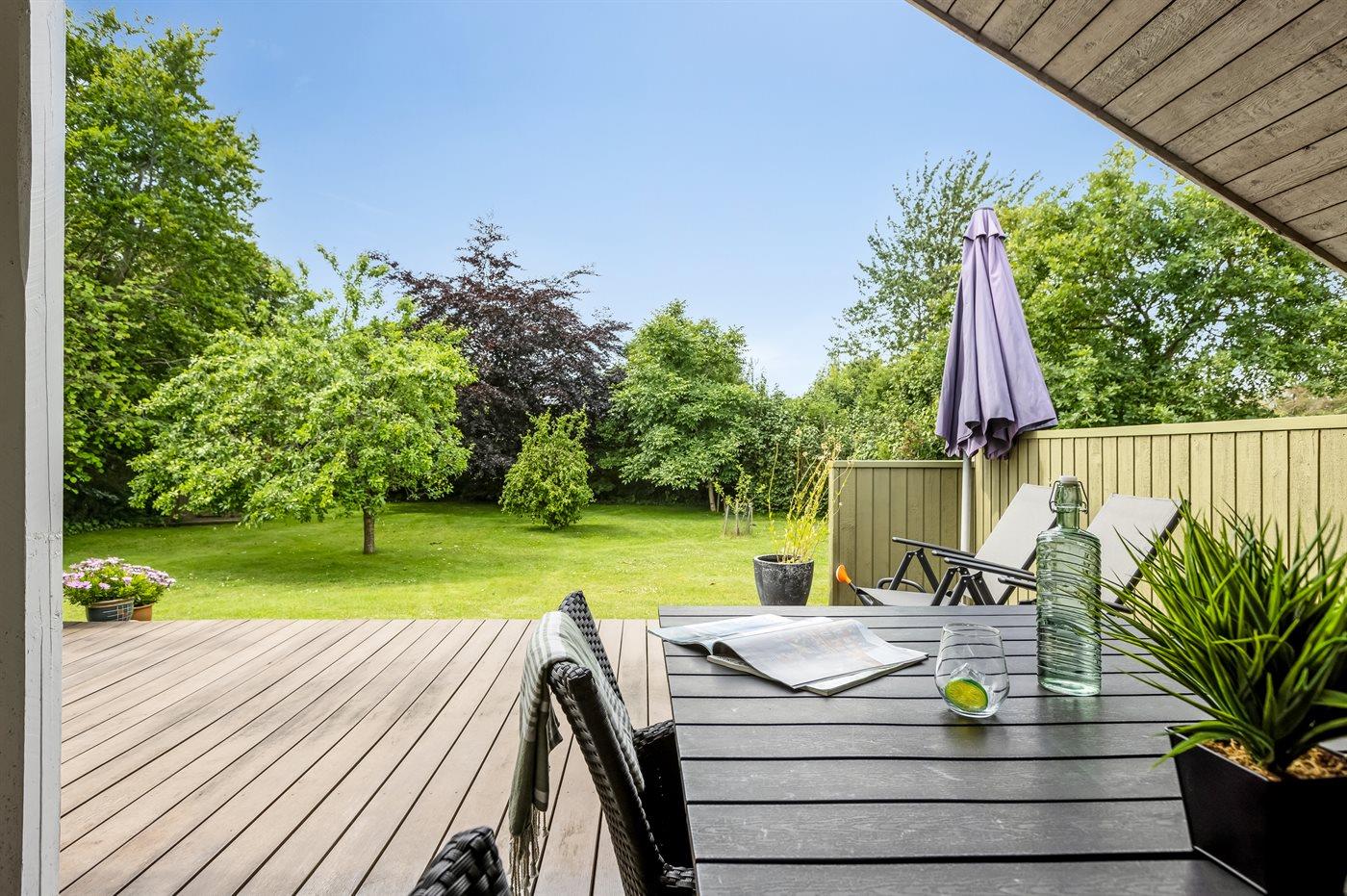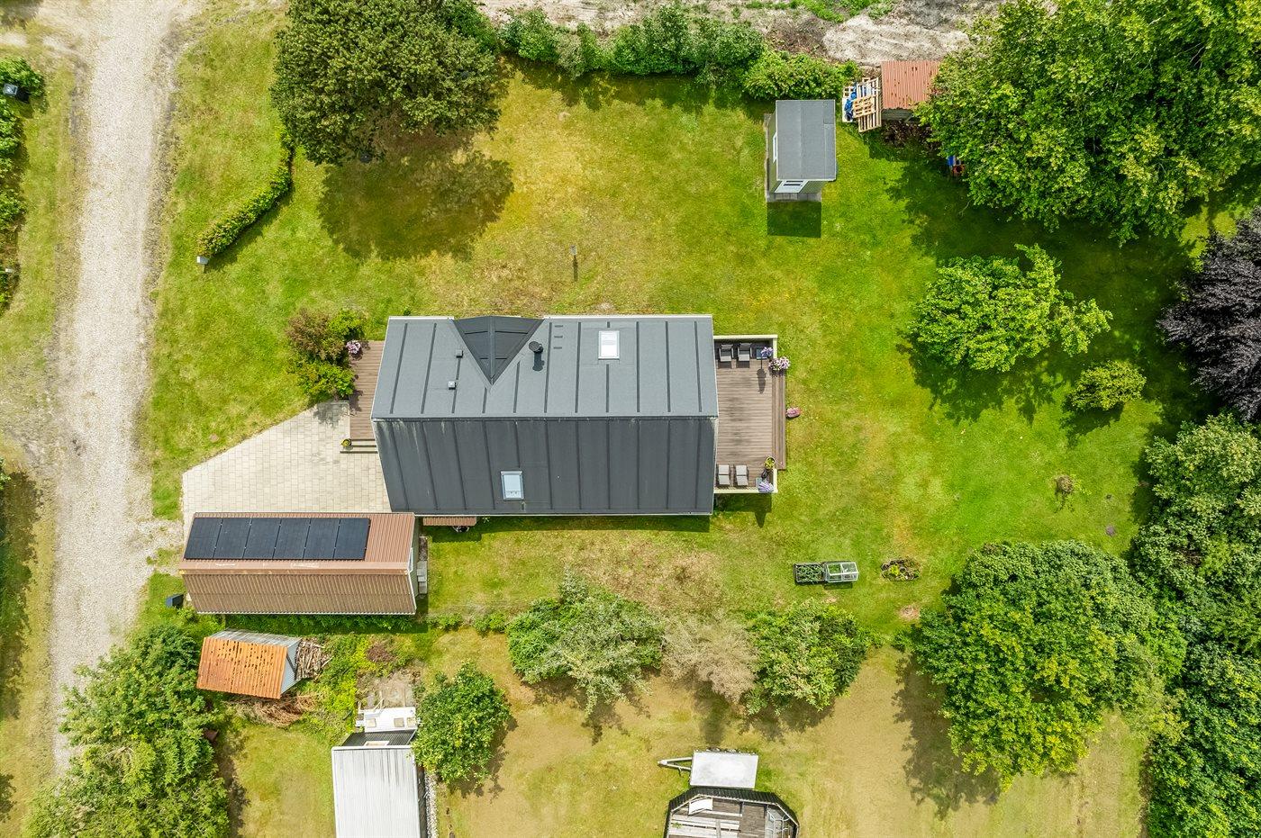 Skønt sommerhus med el-lader til bil, beliggende på en dejlig stor grund med mange buske og træer, så du altid kan finde en hyggekrog. På den hyggelige terrasse har du mulighed for at slappe af i solen, og bliver det for meget, kan du sætte dig på den overdækkede del af terrassen eller slå markisen ud.