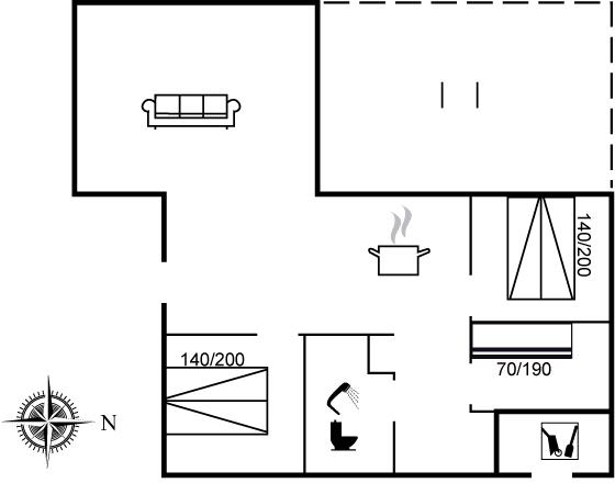 Der er i alt 3 soveværelser. Sovepladserne fordeler sig på: 4 sovepladser i dobbeltsenge. 2 sovepladser i køjeseng.