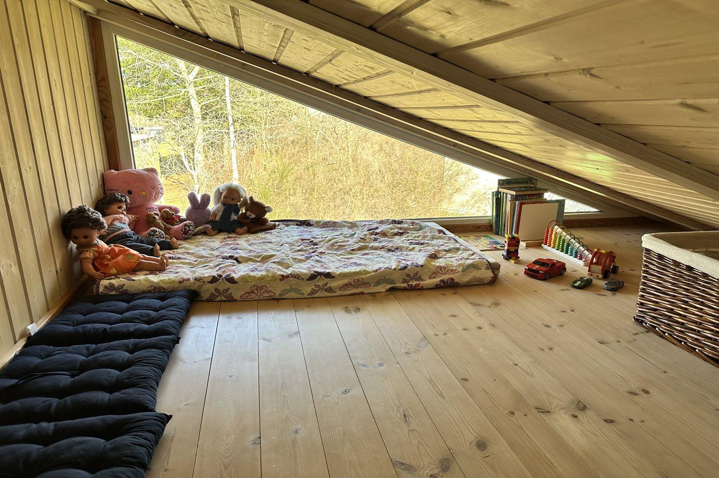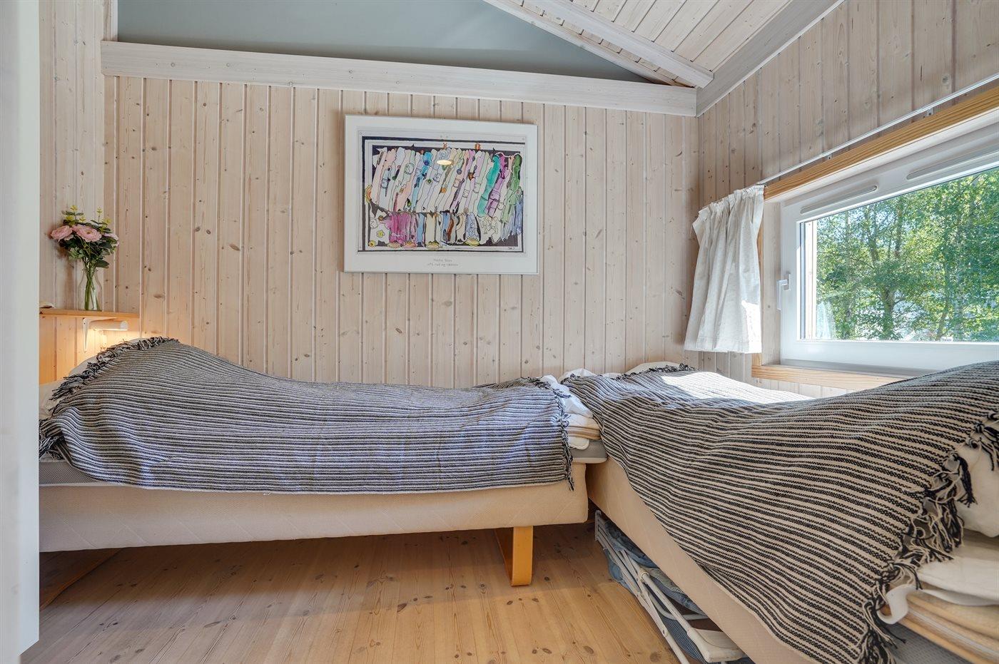 Der er i alt 4 soveværelser. Sovepladserne fordeler sig på: 2 sovepladser i dobbeltseng. 6 sovepladser i enkeltsenge. Derudover er der 1 stk. barneseng.