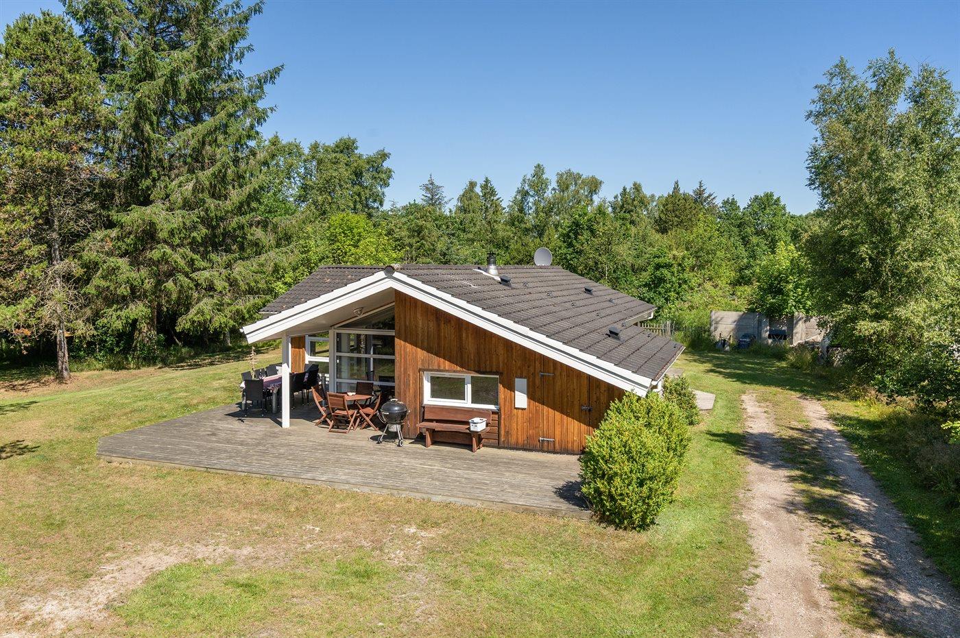 Ferieboligen er beliggende på en 2500 m² stor naturgrund. Der er 1900 m til havet. Nærmeste forretning er beliggende i en afstand af 1800 m. Til ferieboligen hører 40 m² terrasseareal. Desuden er der 10 m² overdækket terrasse. Der er redskabsrum. Gynge. Fodboldmål. Grill til rådighed. Der er installeret stik til opladning af elbil. Parkering ved ferieboligen.