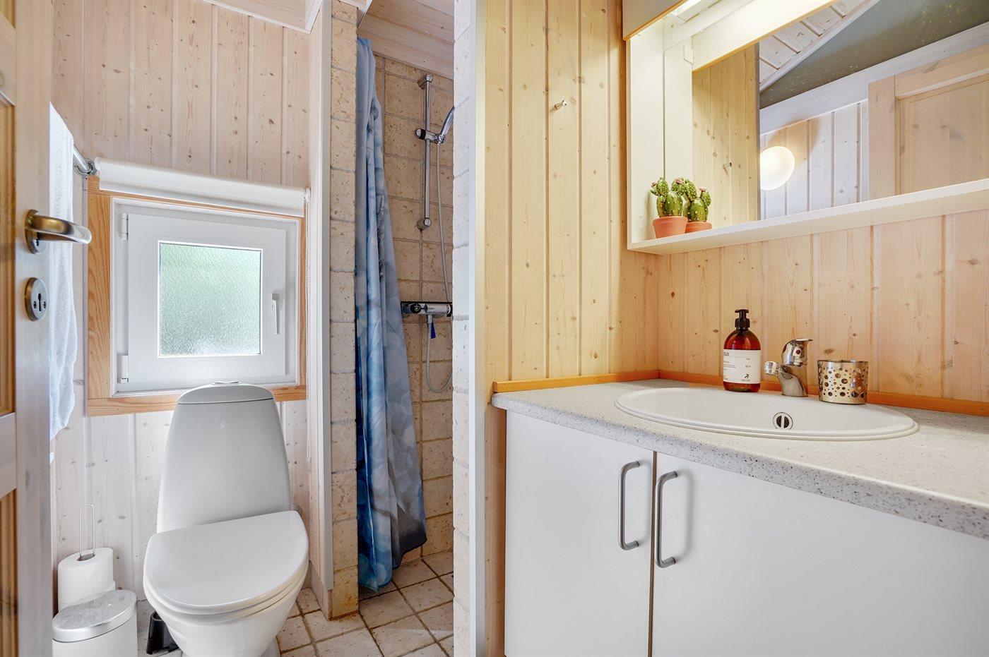 Der er 2 badeværelser med bruseniche og 2 toiletter I saunaen er der mulighed for afslapning.