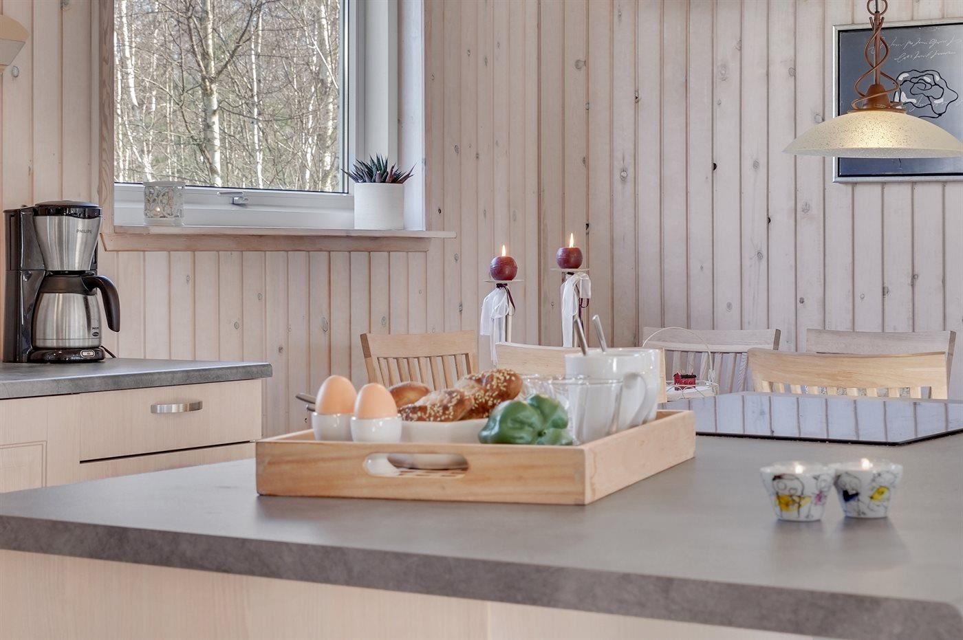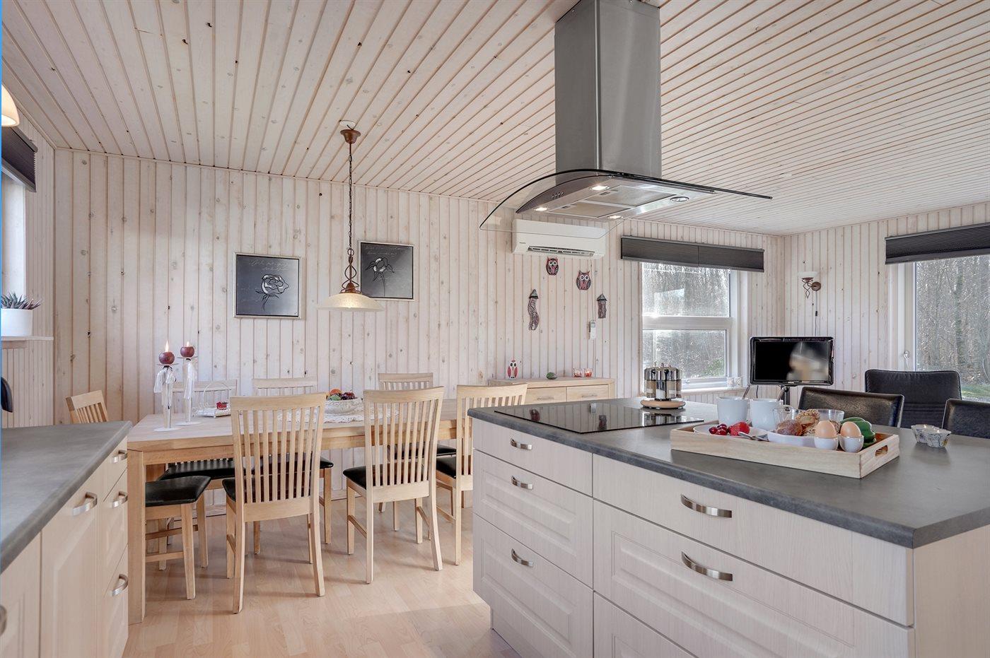 Køkkenet er udstyret med 1 køleskab. Der er 4 induktionskogeplader, varmluftovn samt opvaskemaskine.