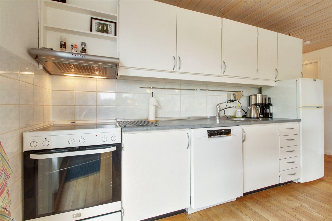 Køkkenet er udstyret med 1 køleskab. Der er 4 keramiske kogeplader, varmluftovn, mikrobølgeovn samt opvaskemaskine.