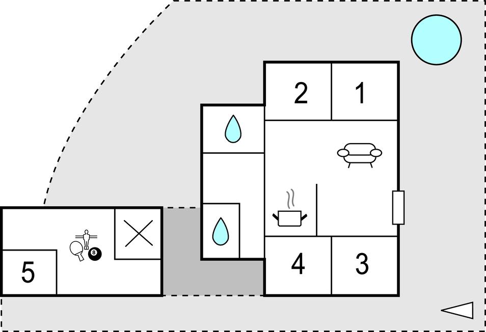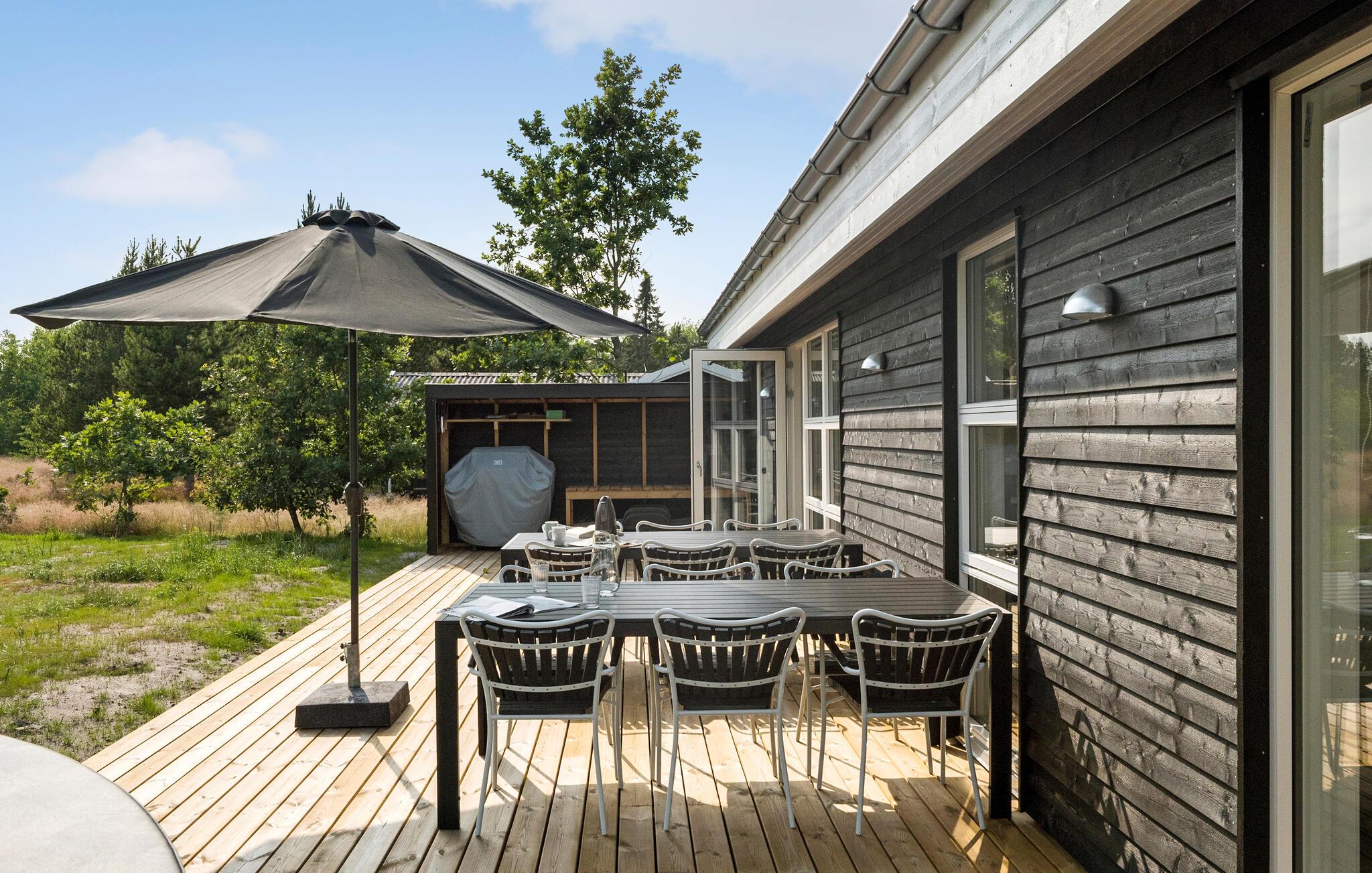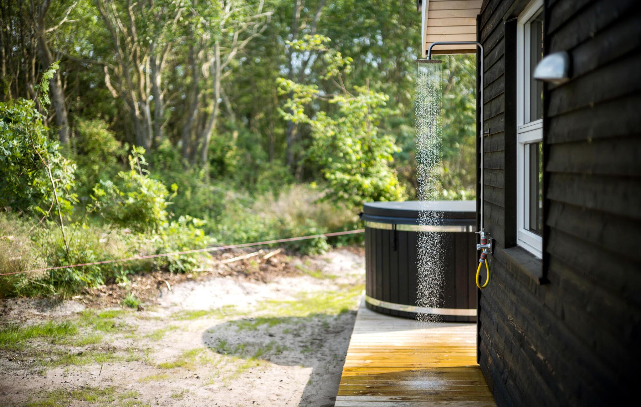 Til huset hører en skøn, rummelig terrasse, hvor I kan nyde dagens måltider i det fri og bade i solen, når vejret er godt. Skyl sandet af under udebruseren efter en tur ved stranden, lad børnene boltre sig med de mange legeredskaber og rund aftenen af under stjernerne i vildmarksbadet, mens I lægger planer for de kommende dage.