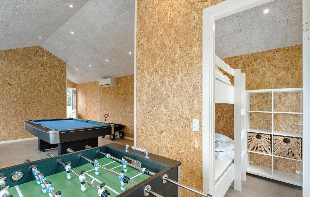 Velkommen til dette skønne hus i Hou, hvor I får godt med plads og faciliteter til et komfortabelt ophold med den store familie eller flere vennefamilier. Huset er flot indrettet med loft til kip, velvalgte materialer og dejlige lysindfald fra oven og fra siden gennem de mange vinduespartier, der samtidig giver en fin udsigt til det grønne. Køkkenet er moderne og fuldt udstyret, så lad blot kokkene kræse lidt ekstra om madlavningen, mens andre duellerer i aktivitetsrummet eller dækker op ved spisebordet til en hyggelig aftensmad med plads til alle.
