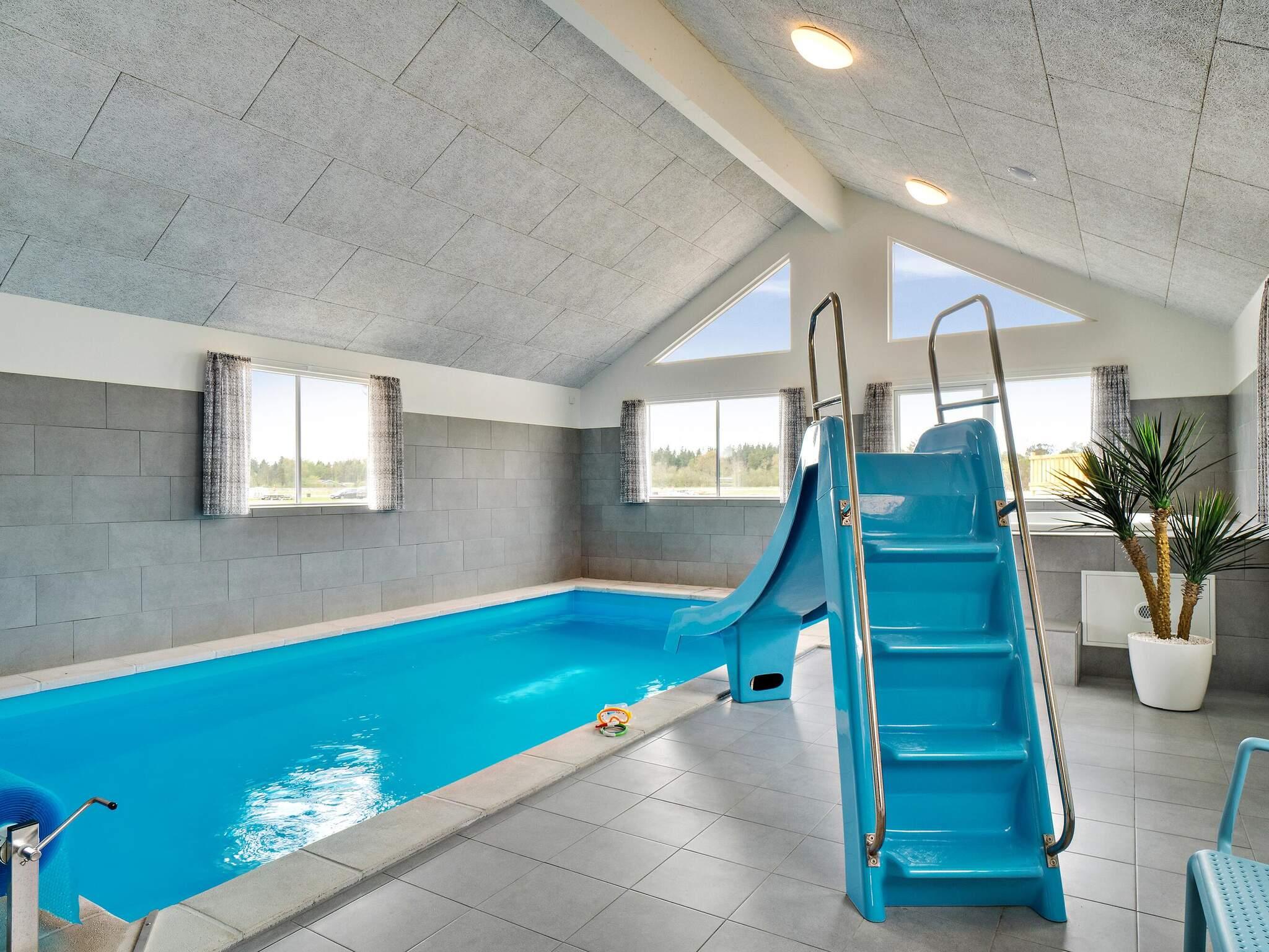 Er du mere til wellness og afslapning, så bare rolig – der er både et luksuriøst boblende spabad og en varm sauna, hvor du kan slappe af efter en svømmetur i den 20 m2 store indendørs swimmingpool. Poolen har romerske trin for nem ind- og udstigning, en vandrutsjebane og et modstrømssystem.