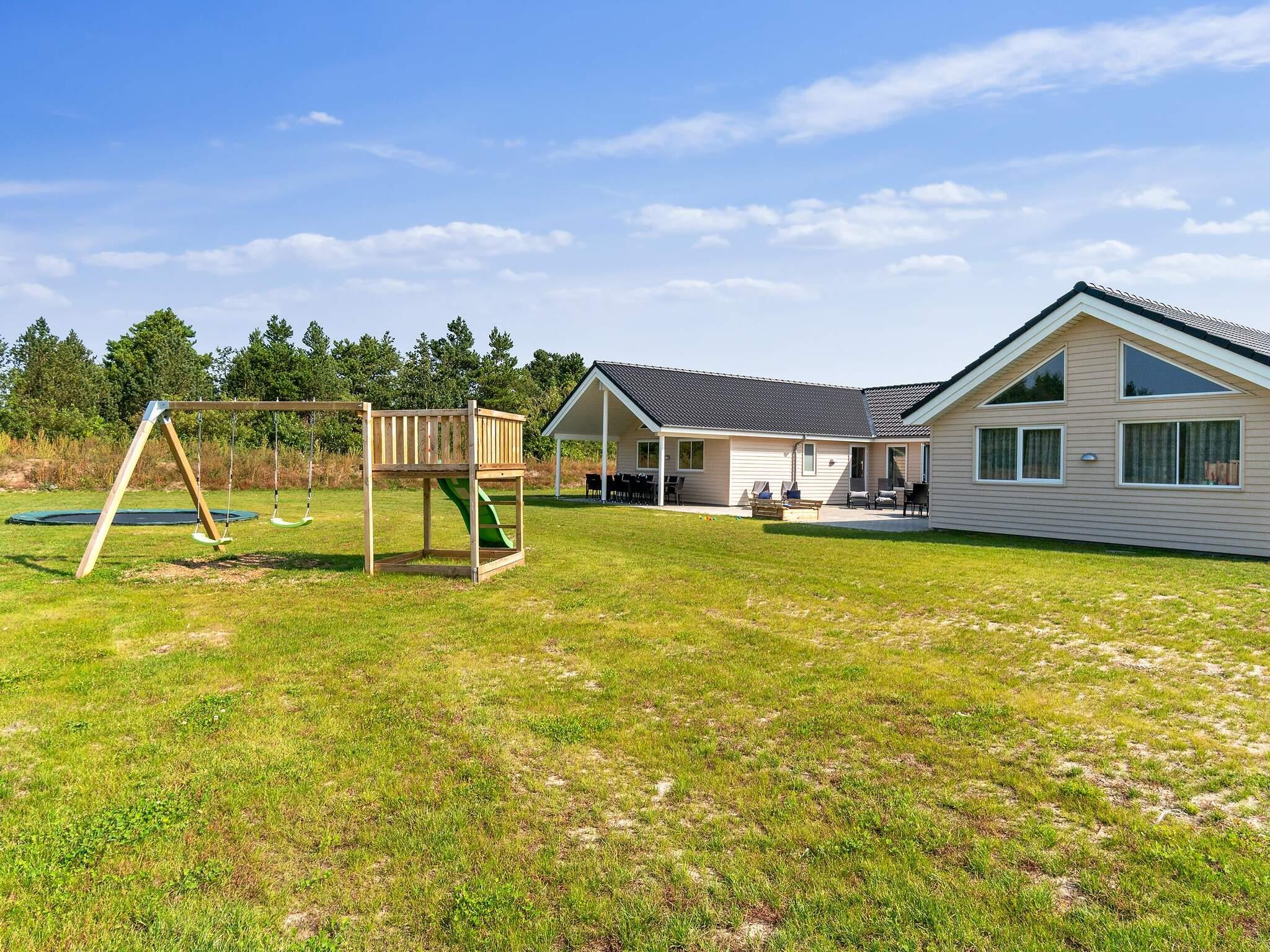 Udendørs er der masser af plads og faciliteter til sjov og leg. Haven har trampolin, gyngestativ og sandkasse, mens plænen er perfekt til at spille bold og boltre sig på. Terrassen er udstyret med grill og havemøbler, hvilket gør den ideel til en hyggelig grillaften udendørs.