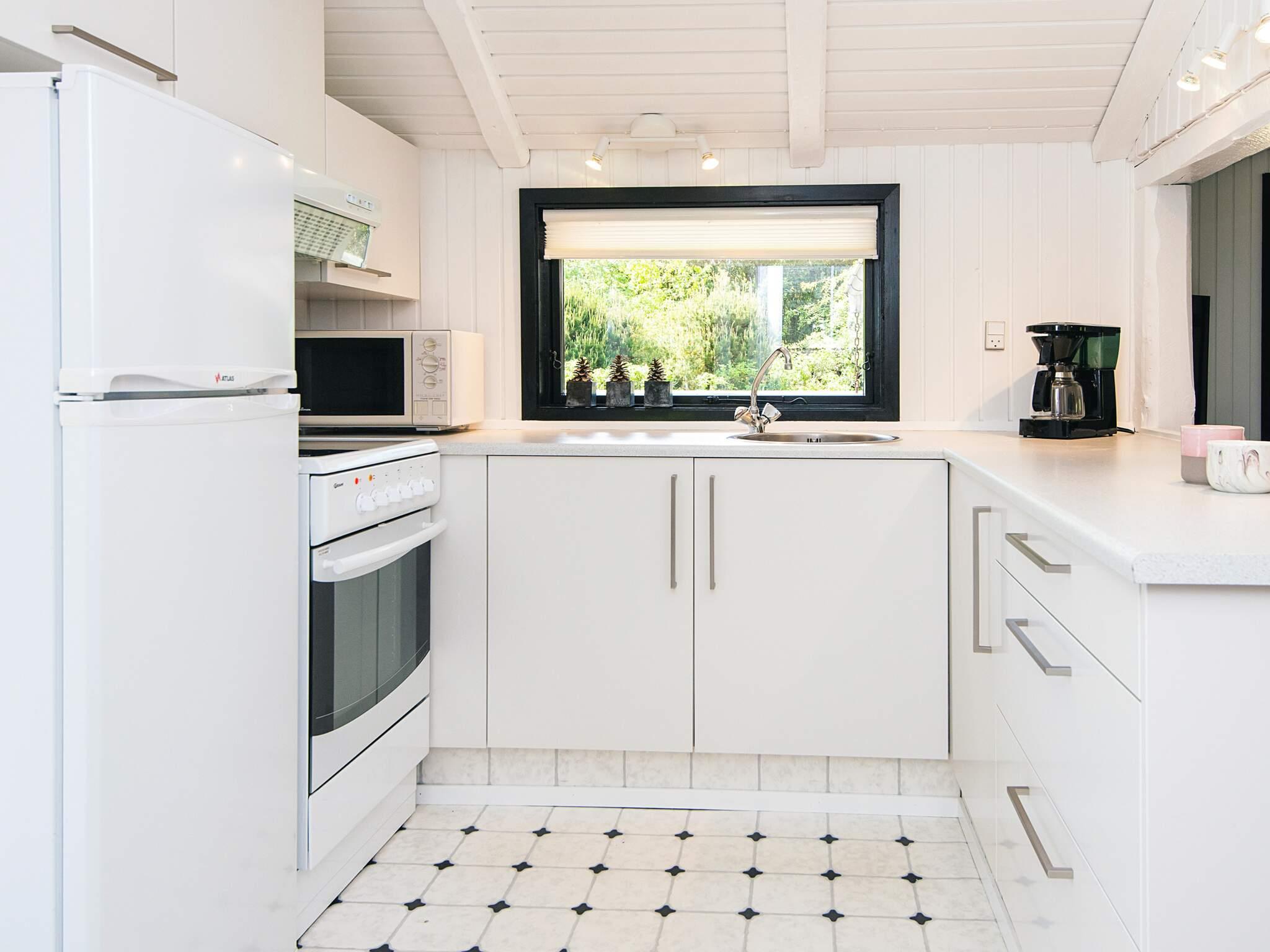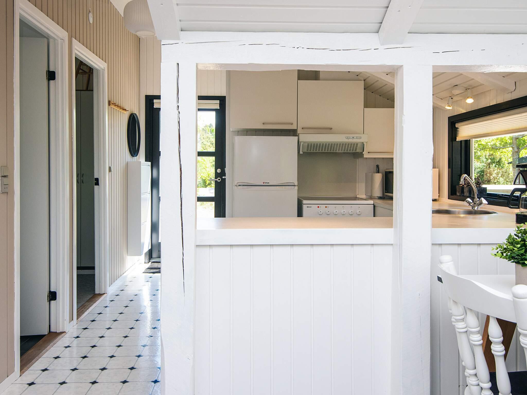 Sommerhuset byder på 79 veludnyttede kvadratmeter fordelt på dejligt køkken-alrum med højt til loftet, god plads, direkte udgang til terrassen, og skønt naturligt lysindfald.