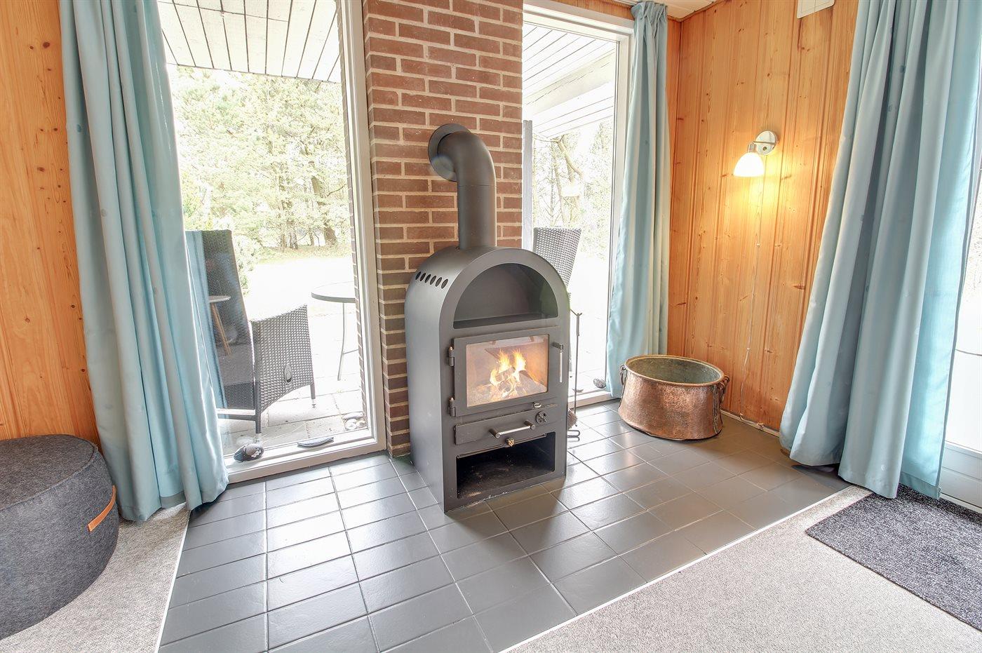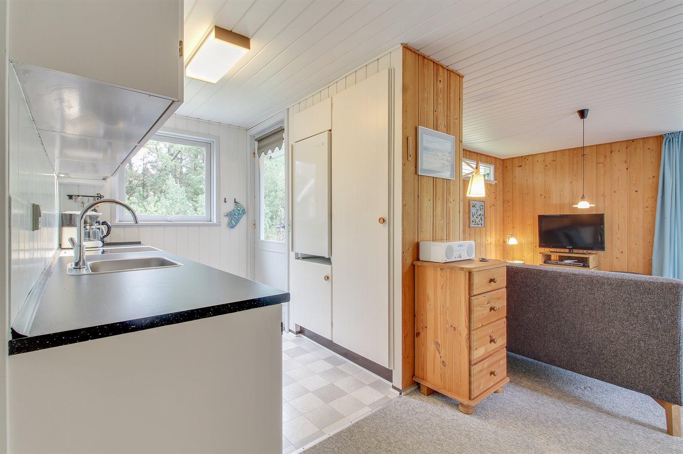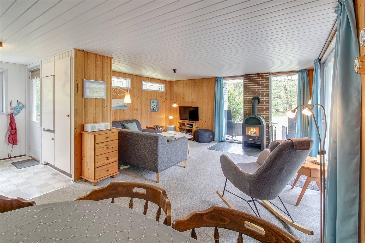 Indenfor er huset hyggeligt indrettet med åbent køkken i forbindelse med opholdsstuen, hvor familien naturligt kan samles. Her er der TV og brændeovn, som skaber varme og stemning på køligere dage. Huset er indrettet med tre soveværelser; to med dobbeltsenge og ét med køjeseng.